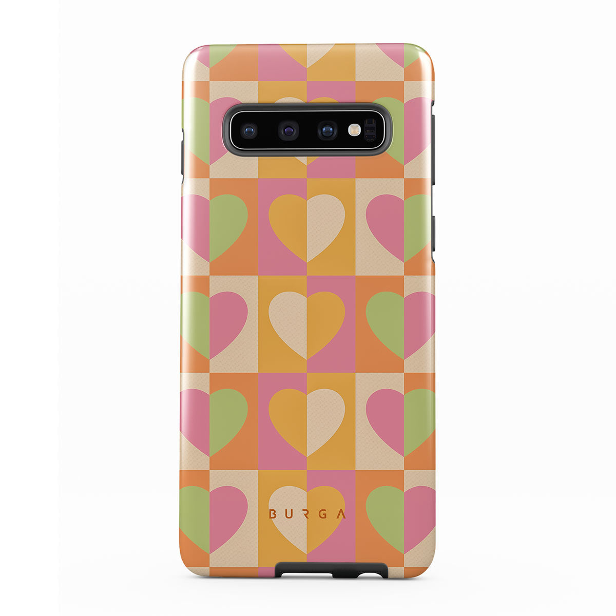 Beautifully geometrical and lovable Summer Love Samsung Galaxy S10 4G phone case combines a soft pastel color scheme with a playful square heart pattern. Adding a touch of love to your style was never easier! Keep your phone as safe as you keep your heart in a cheeky checkered protective phone case!