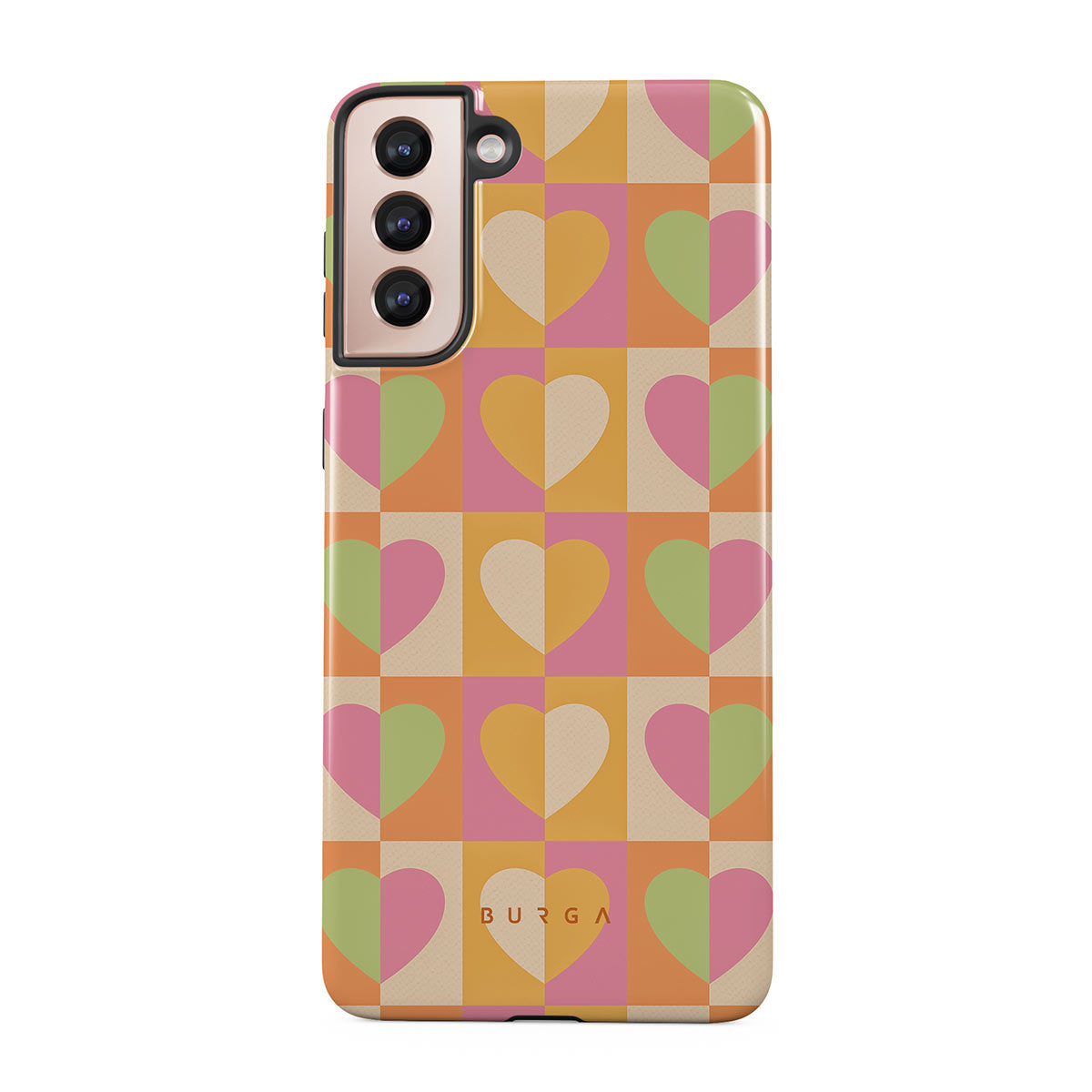 Beautifully geometrical and lovable Summer Love Samsung Galaxy S21 Plus phone case combines a soft pastel color scheme with a playful square heart pattern. Adding a touch of love to your style was never easier! Keep your phone as safe as you keep your heart in a cheeky checkered protective phone case!