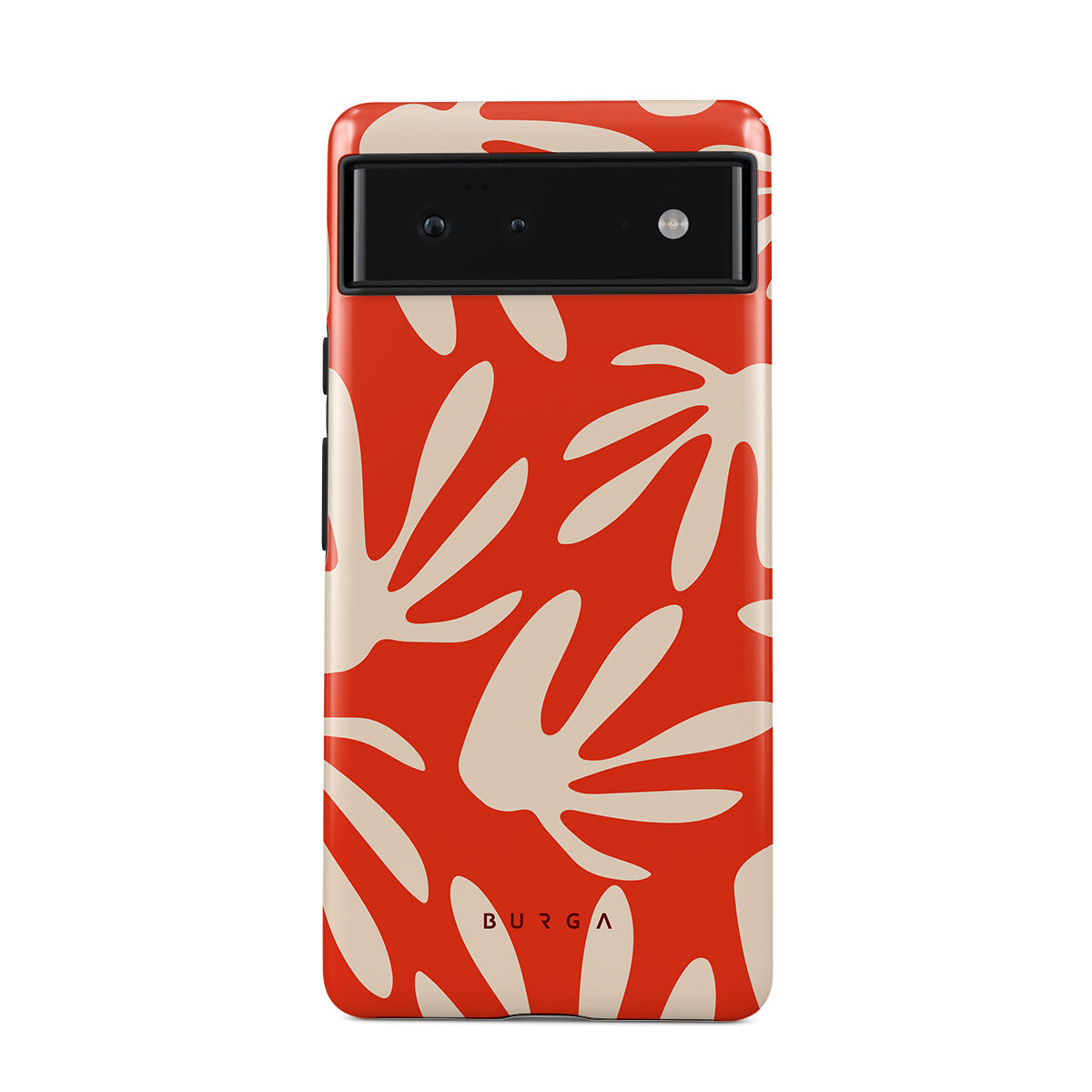 Unfolding the untamed allure of a summer sunset, this design boasts a vivid red background that sets your spirit of adventure aflame. Sprinkled across this fierce backdrop, lines of radiance dance playfully. Experience the warmth of passion and the sparkle of joy in the palm of your hand with our Heatwave Google Pixel 6 Pro phone case.