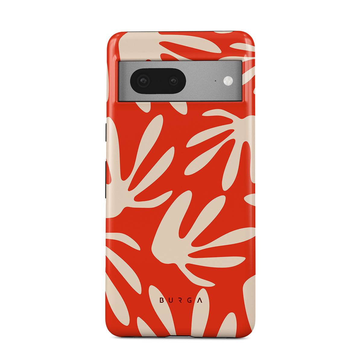 Unfolding the untamed allure of a summer sunset, this design boasts a vivid red background that sets your spirit of adventure aflame. Sprinkled across this fierce backdrop, lines of radiance dance playfully. Experience the warmth of passion and the sparkle of joy in the palm of your hand with our Heatwave Google Pixel 7a phone case.