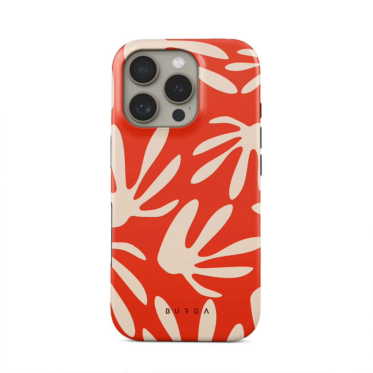 Unfolding the untamed allure of a summer sunset, this design boasts a vivid red background that sets your spirit of adventure aflame. Sprinkled across this fierce backdrop, lines of radiance dance playfully. Experience the warmth of passion and the sparkle of joy in the palm of your hand with our Heatwave iPhone 16 Pro phone case.