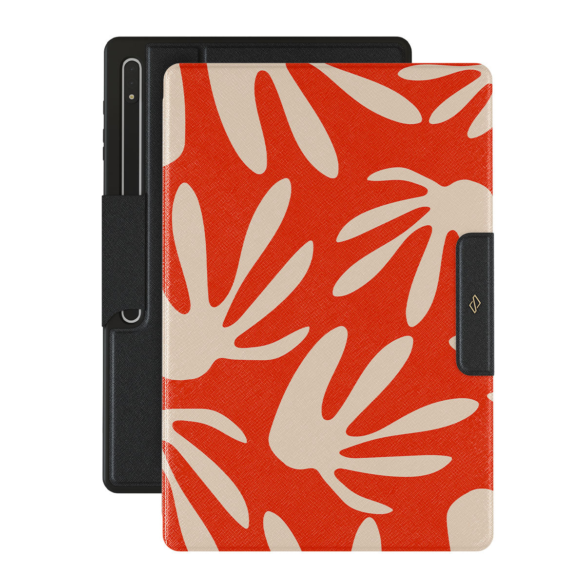 Unfolding the untamed allure of a summer sunset, this design boasts a vivid red background that sets your spirit of adventure aflame. Sprinkled across this fierce backdrop, lines of radiance dance playfully. Experience the warmth of passion and the sparkle of joy in the palm of your hand with our Heatwave Samsung Galaxy Tab S10 Ultra folio case.