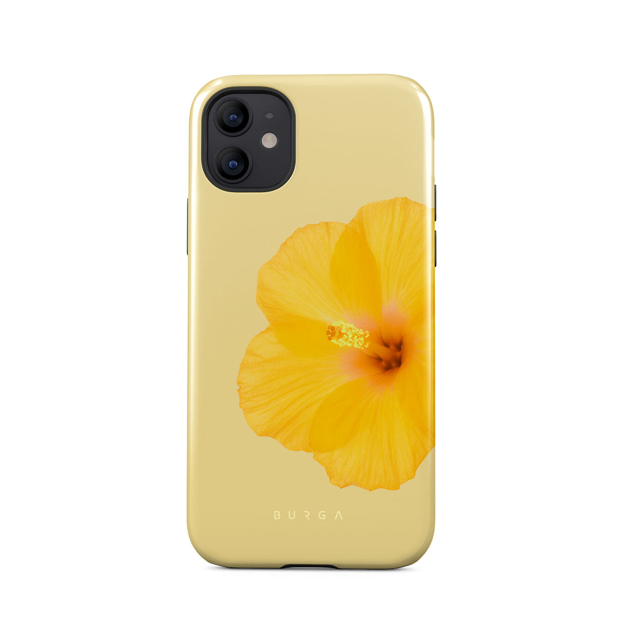 Our bright yellow iPhone 12 phone case features bold, beautiful flowers that evoke a sense of nostalgia and happiness. This cheerful floral design captures the essence of joyful moments, making your device a reminder of sunny memories. Perfect for brightening up your day.