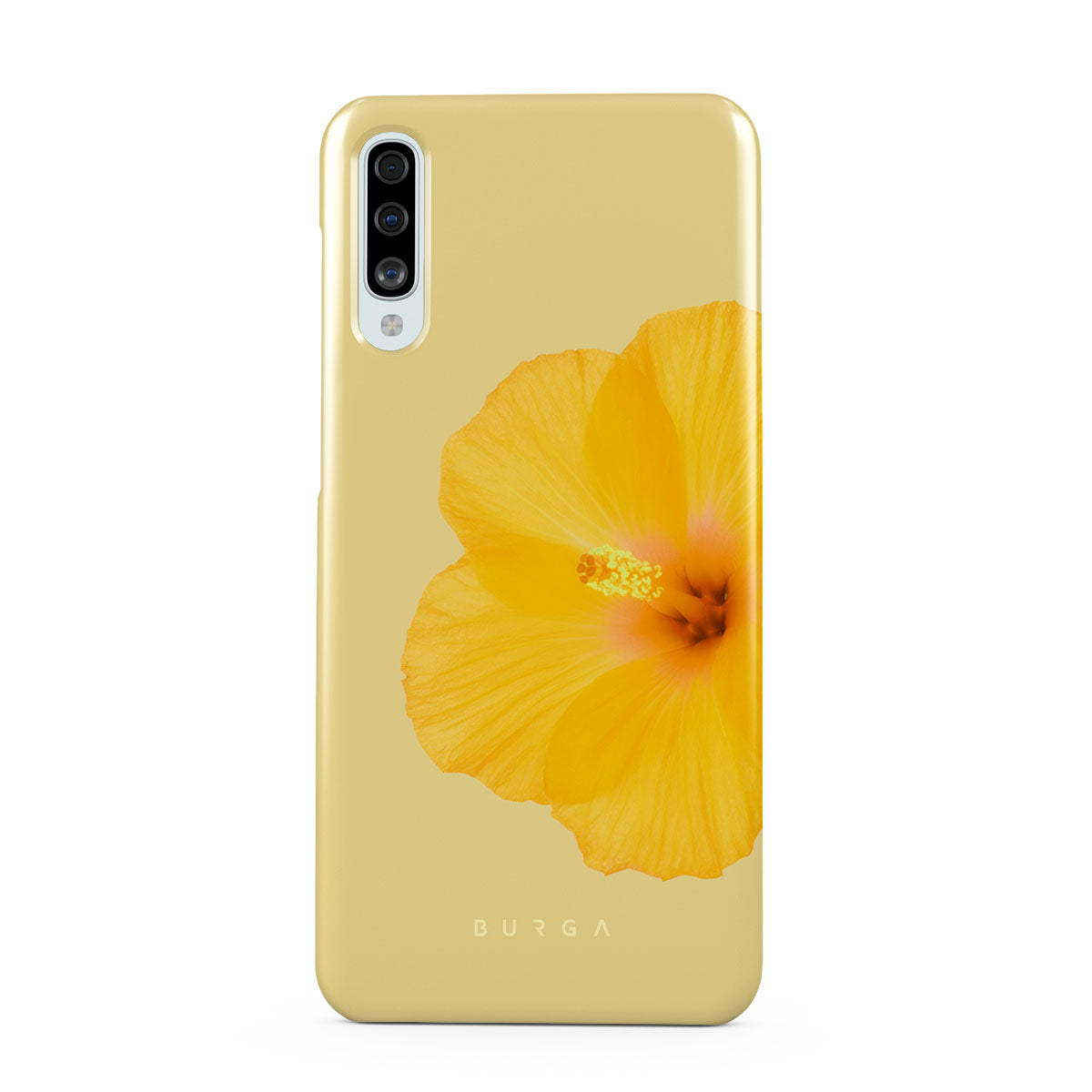 Our bright yellow Samsung Galaxy A50 phone case features bold, beautiful flowers that evoke a sense of nostalgia and happiness. This cheerful floral design captures the essence of joyful moments, making your device a reminder of sunny memories. Perfect for brightening up your day.
