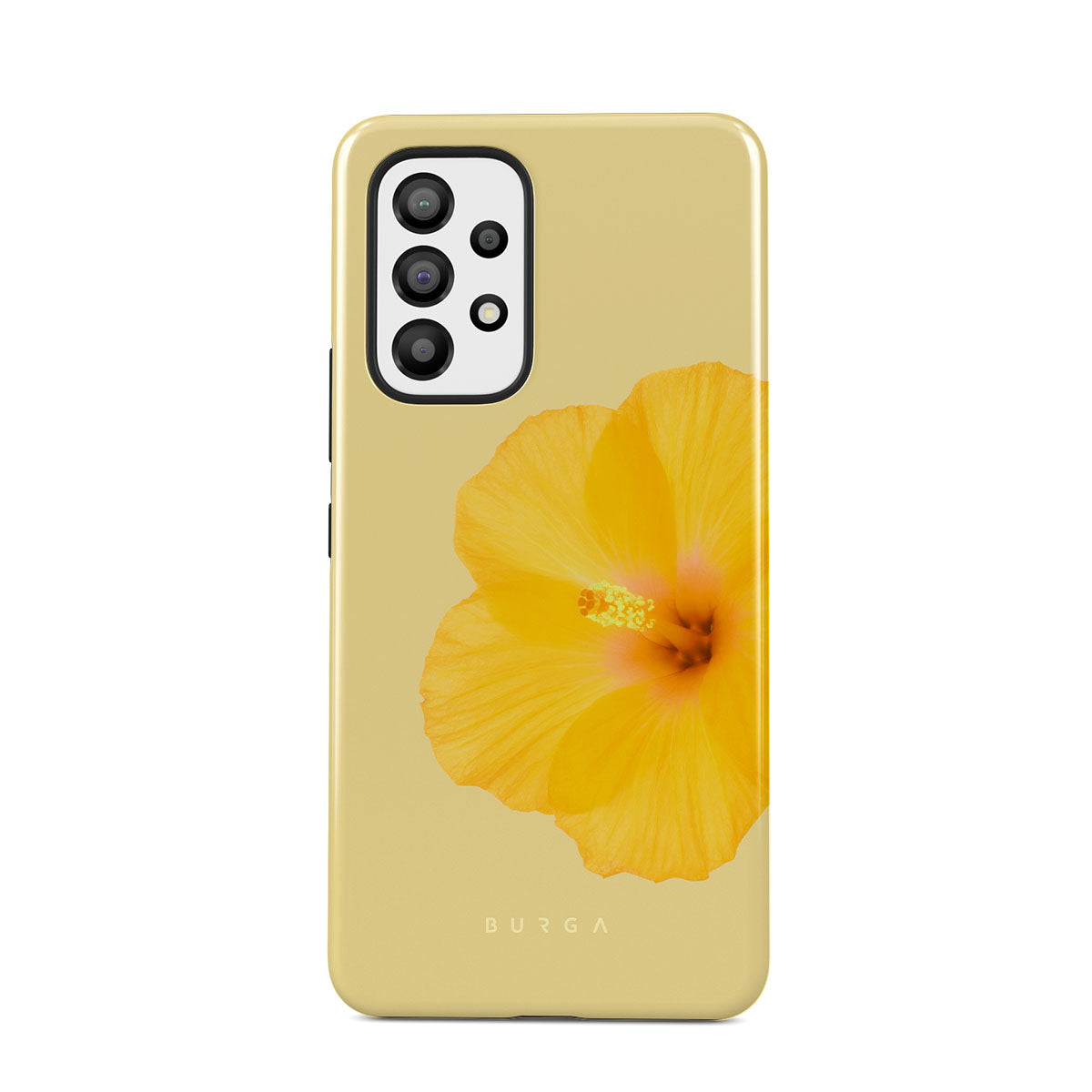 Our bright yellow Samsung Galaxy A53 phone case features bold, beautiful flowers that evoke a sense of nostalgia and happiness. This cheerful floral design captures the essence of joyful moments, making your device a reminder of sunny memories. Perfect for brightening up your day.