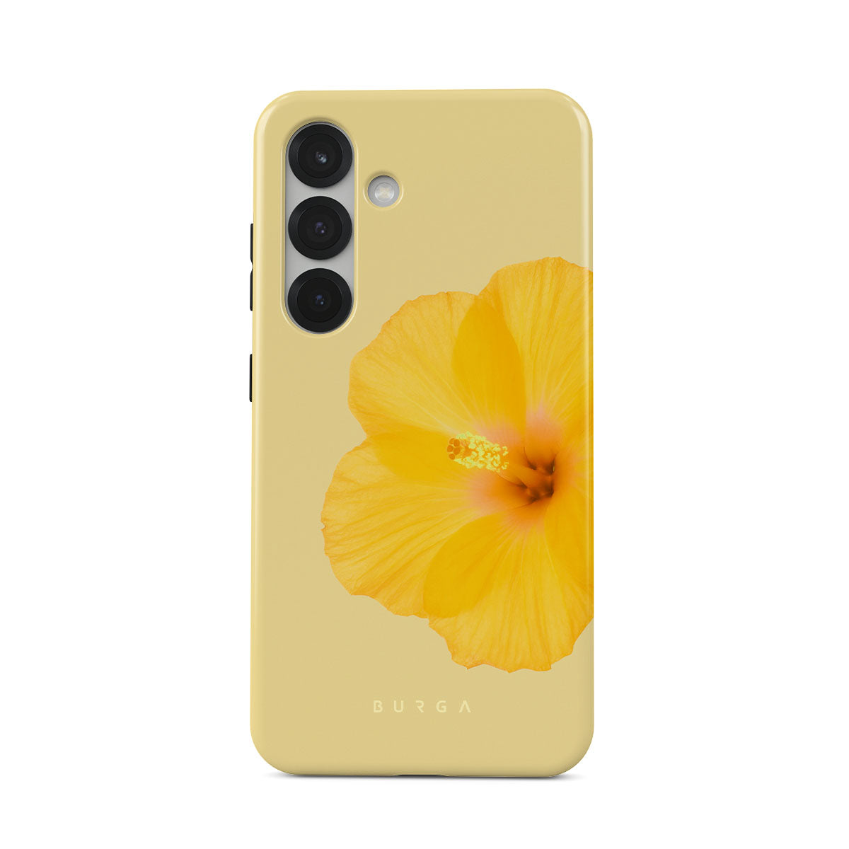 Our bright yellow Samsung Galaxy S25 phone case features bold, beautiful flowers that evoke a sense of nostalgia and happiness. This cheerful floral design captures the essence of joyful moments, making your device a reminder of sunny memories. Perfect for brightening up your day.