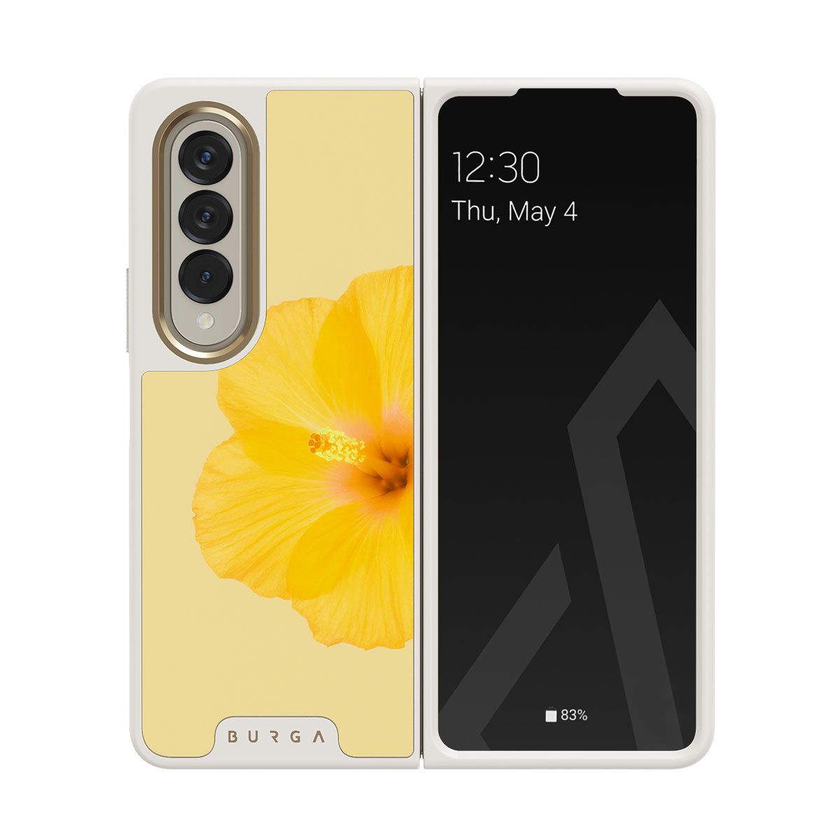Our bright yellow Samsung Galaxy Z Fold 4 phone case features bold, beautiful flowers that evoke a sense of nostalgia and happiness. This cheerful floral design captures the essence of joyful moments, making your device a reminder of sunny memories. Perfect for brightening up your day.