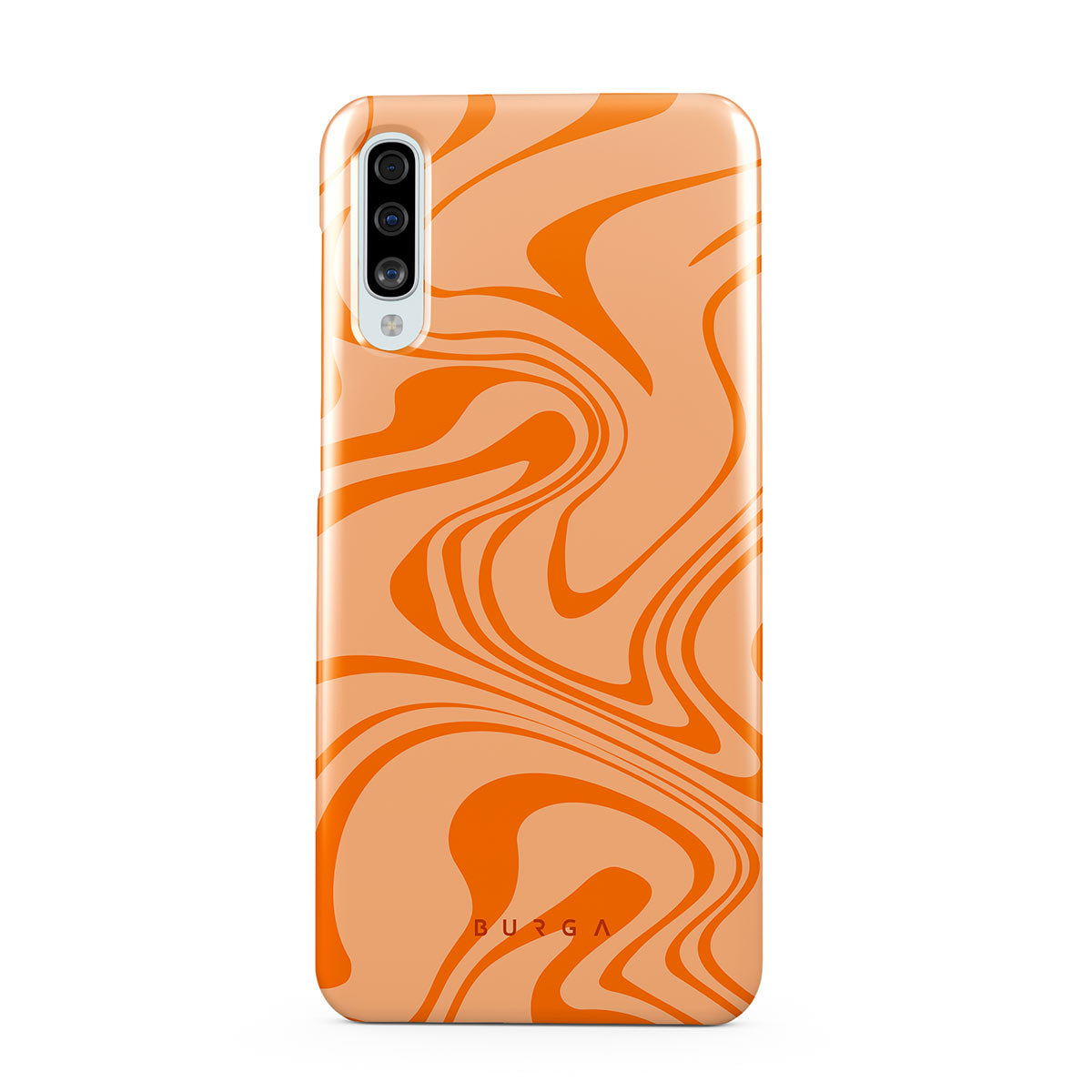 Add some retro vibes to your modern device with our High Vibrations Samsung Galaxy A50 phone case. Bright orange allows the darker color swirls to release all that groove energy! This cheerful design is a true showstopper.