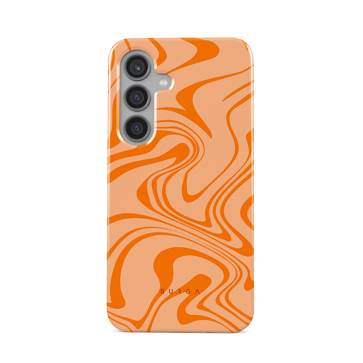 Add some retro vibes to your modern device with our High Vibrations Samsung Galaxy S24 phone case. Bright orange allows the darker color swirls to release all that groove energy! This cheerful design is a true showstopper.