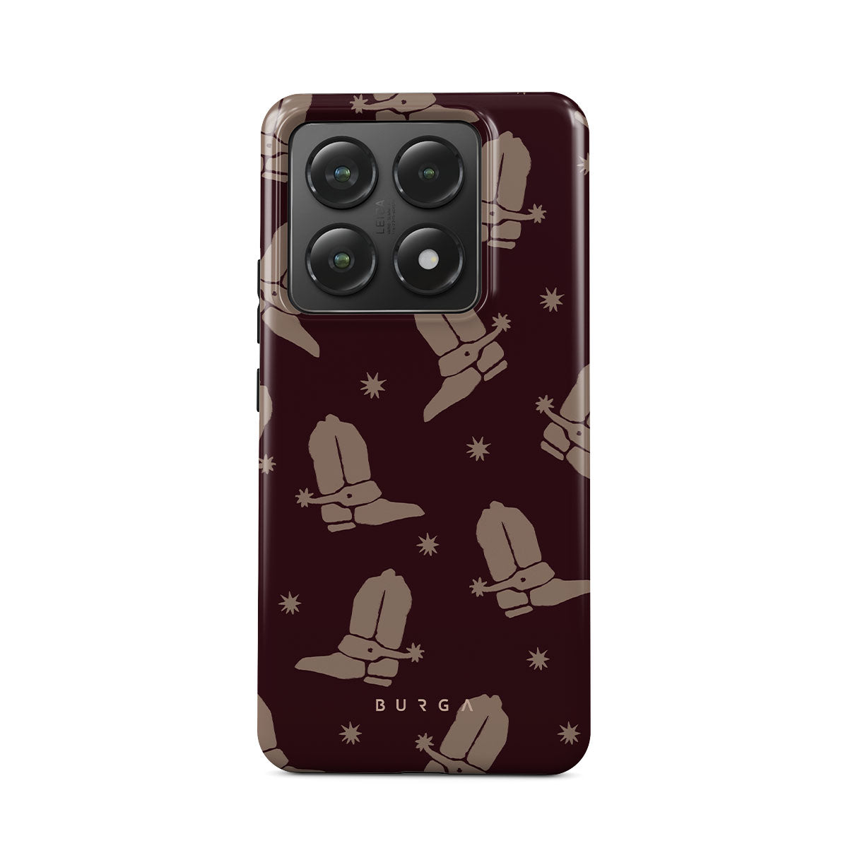 Say Howdy to this charming Xiaomi 14T Pro phone case design. Cowboy boots and stars dance across a deep brown background, celebrating the essence of western life. Perfect for those who embrace their free spirit.