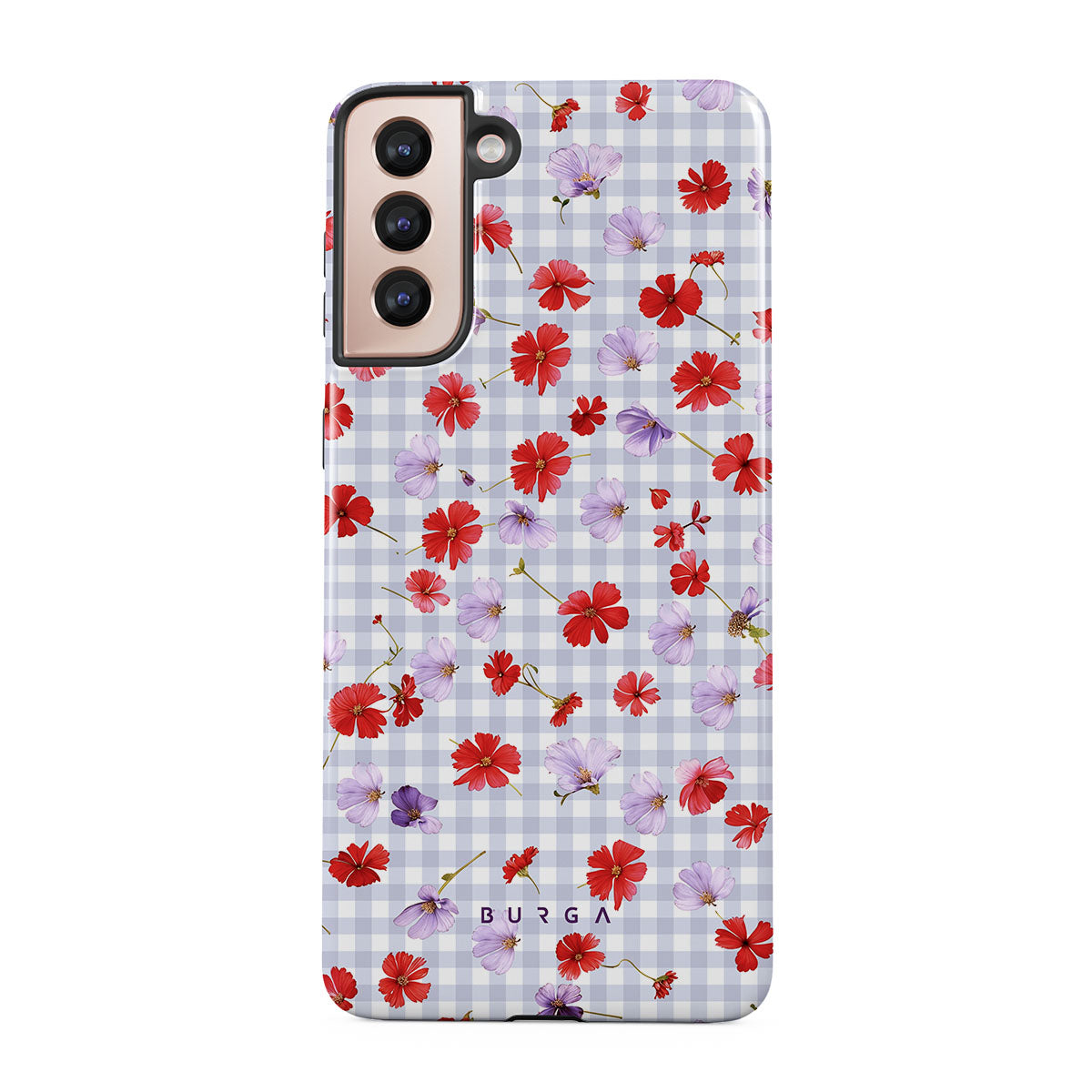 The Idyllic Samsung Galaxy S21 Plus phone case design—a pattern that takes you to a field where you can lie back, watch petals dance in the wind, and lose yourself in the day's calm.
