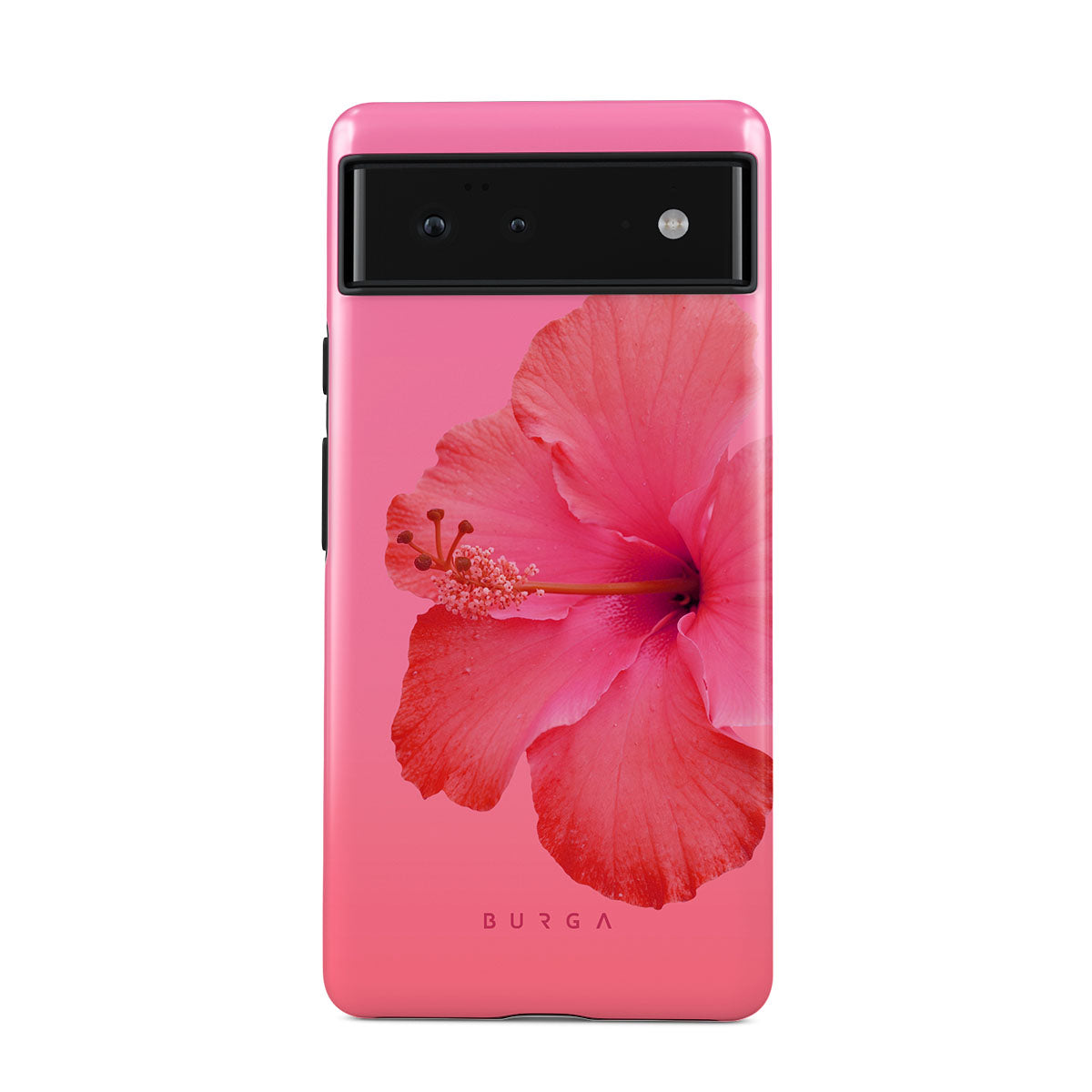 Our Island Girl Google Pixel 6 Pro phone case design bursts with the fiery red of a hibiscus in full bloom against a dreamy pink backdrop. Perfect for those who embody the spirit of a sun-kissed island retreat.