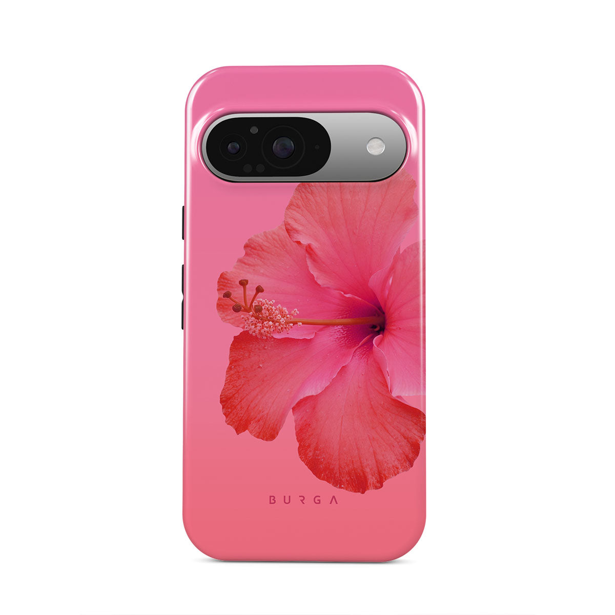 Our Island Girl Google Pixel 9 phone case design bursts with the fiery red of a hibiscus in full bloom against a dreamy pink backdrop. Perfect for those who embody the spirit of a sun-kissed island retreat.