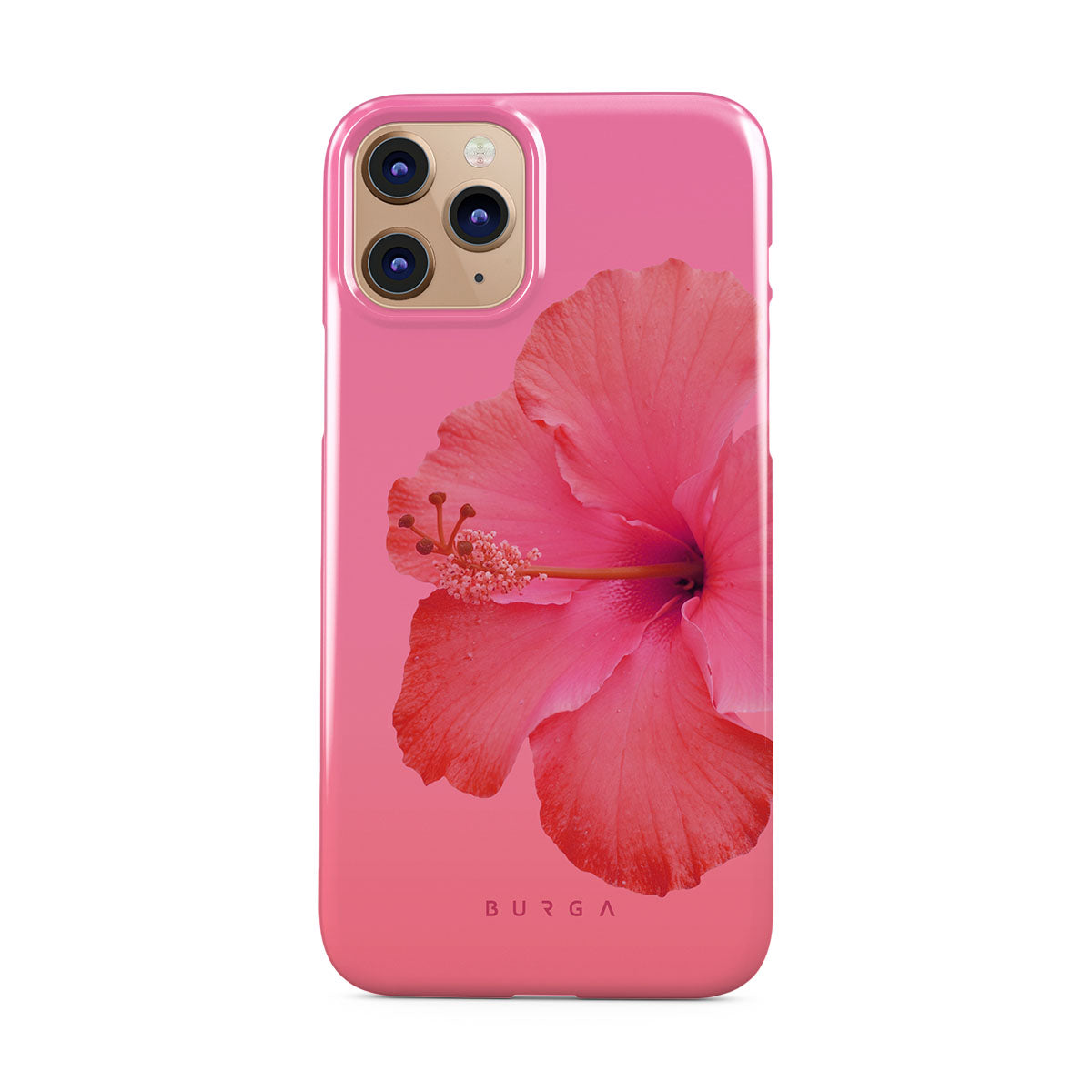 Our Island Girl iPhone 11 Pro phone case design bursts with the fiery red of a hibiscus in full bloom against a dreamy pink backdrop. Perfect for those who embody the spirit of a sun-kissed island retreat.