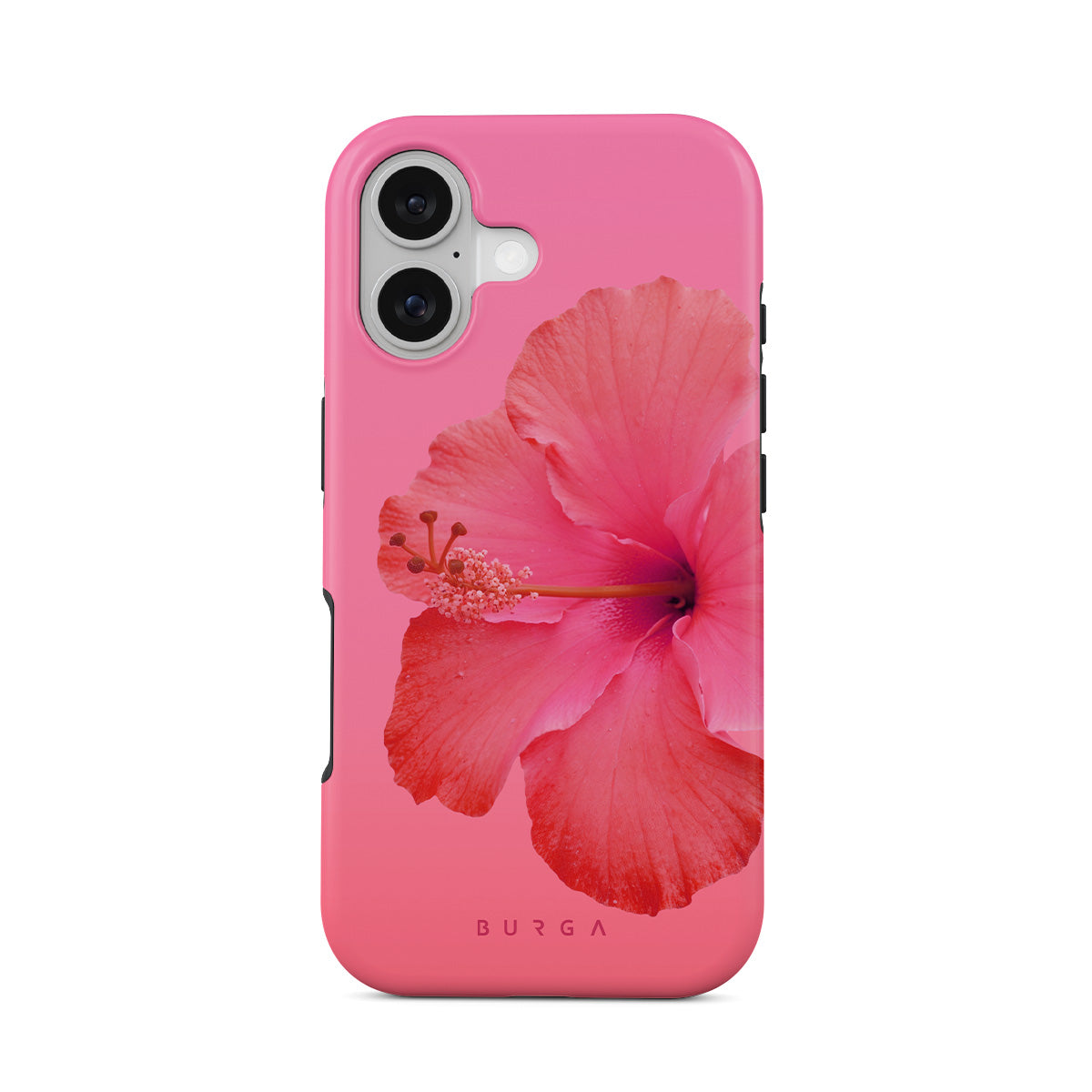 Our Island Girl iPhone 17 phone case design bursts with the fiery red of a hibiscus in full bloom against a dreamy pink backdrop. Perfect for those who embody the spirit of a sun-kissed island retreat.