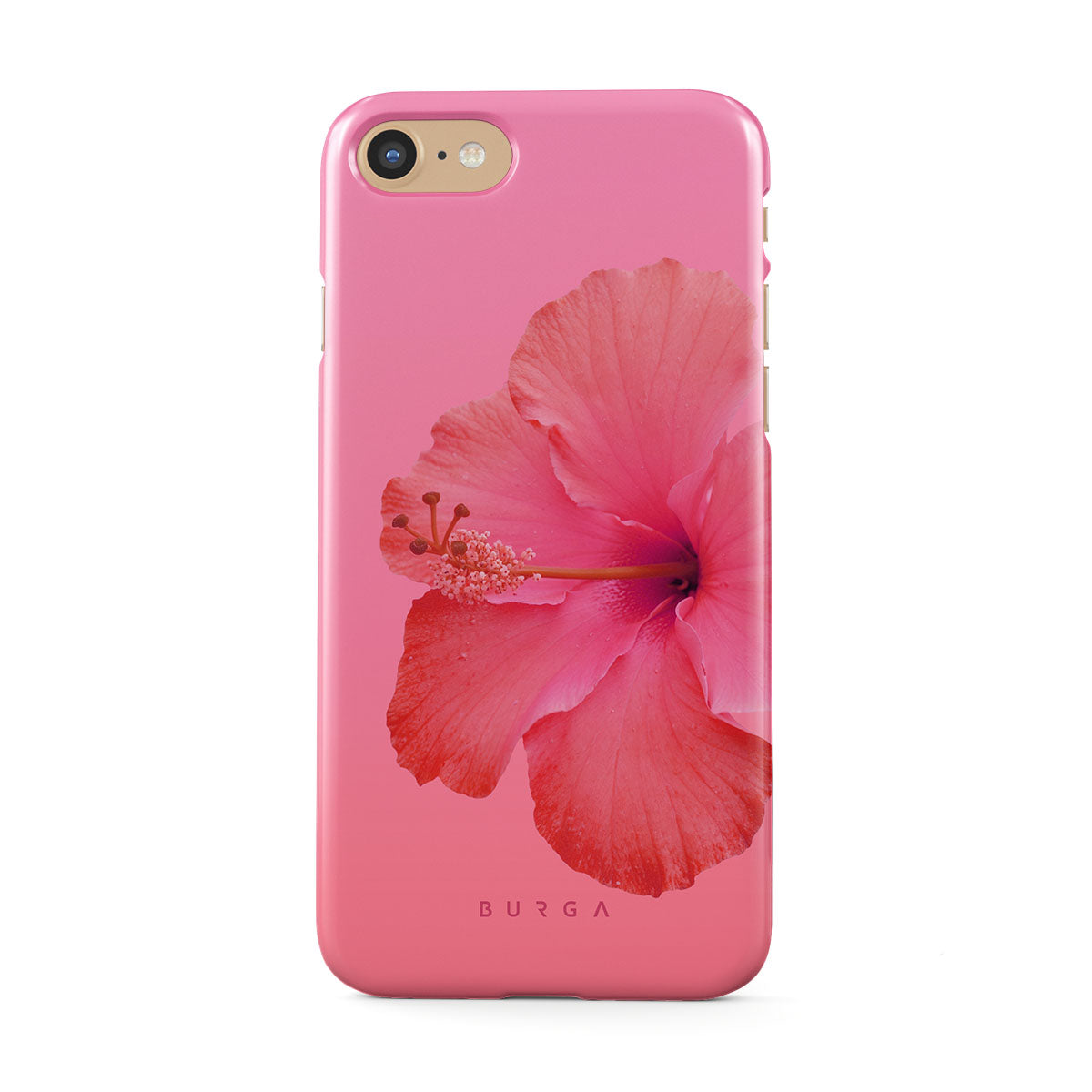 Our Island Girl iPhone SE (2020) phone case design bursts with the fiery red of a hibiscus in full bloom against a dreamy pink backdrop. Perfect for those who embody the spirit of a sun-kissed island retreat.
