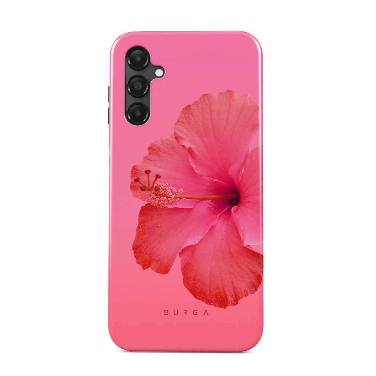Our Island Girl Samsung Galaxy A14 5G phone case design bursts with the fiery red of a hibiscus in full bloom against a dreamy pink backdrop. Perfect for those who embody the spirit of a sun-kissed island retreat.
