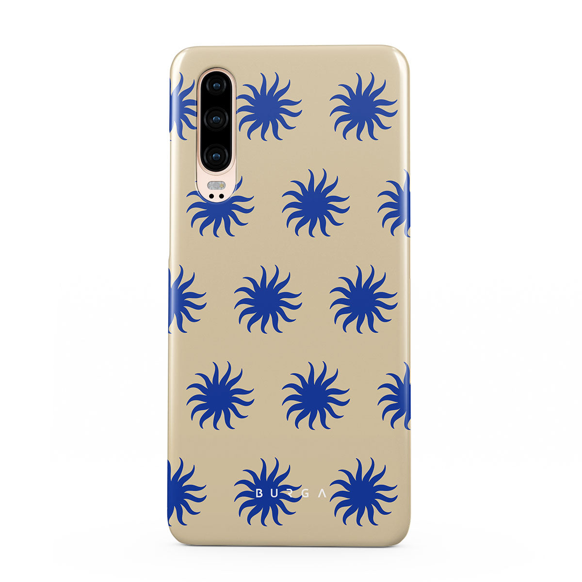 Immerse yourself in the vibrant spirit of the tropics with our La Playa Huawei P30 phone case. This design boasts a warm, sandy beige base highlighted by striking blue motifs, reminiscent of the breezy Caribbean islands. It’s a stylish celebration of coastal beauty.