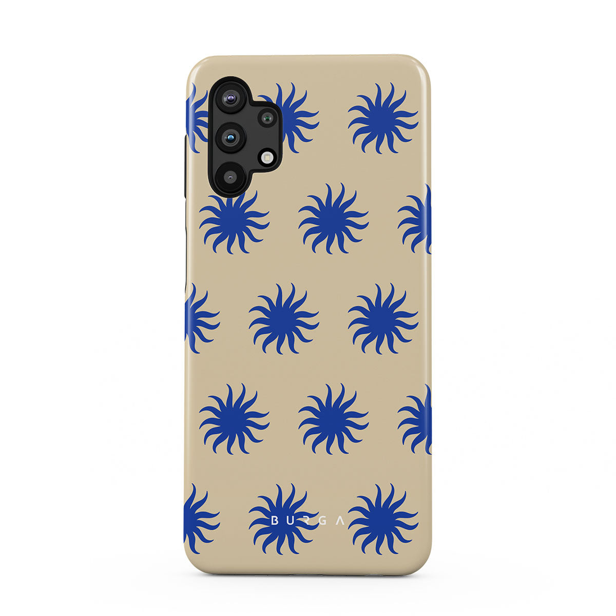 Immerse yourself in the vibrant spirit of the tropics with our La Playa Samsung Galaxy A32 5G phone case. This design boasts a warm, sandy beige base highlighted by striking blue motifs, reminiscent of the breezy Caribbean islands. It’s a stylish celebration of coastal beauty.