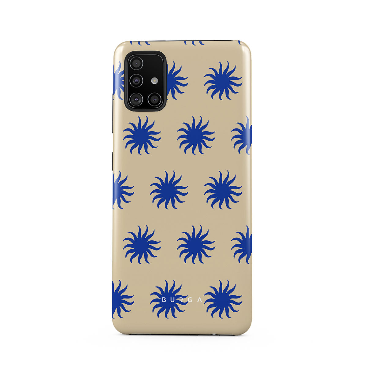 Immerse yourself in the vibrant spirit of the tropics with our La Playa Samsung Galaxy A51 4G phone case. This design boasts a warm, sandy beige base highlighted by striking blue motifs, reminiscent of the breezy Caribbean islands. It’s a stylish celebration of coastal beauty.