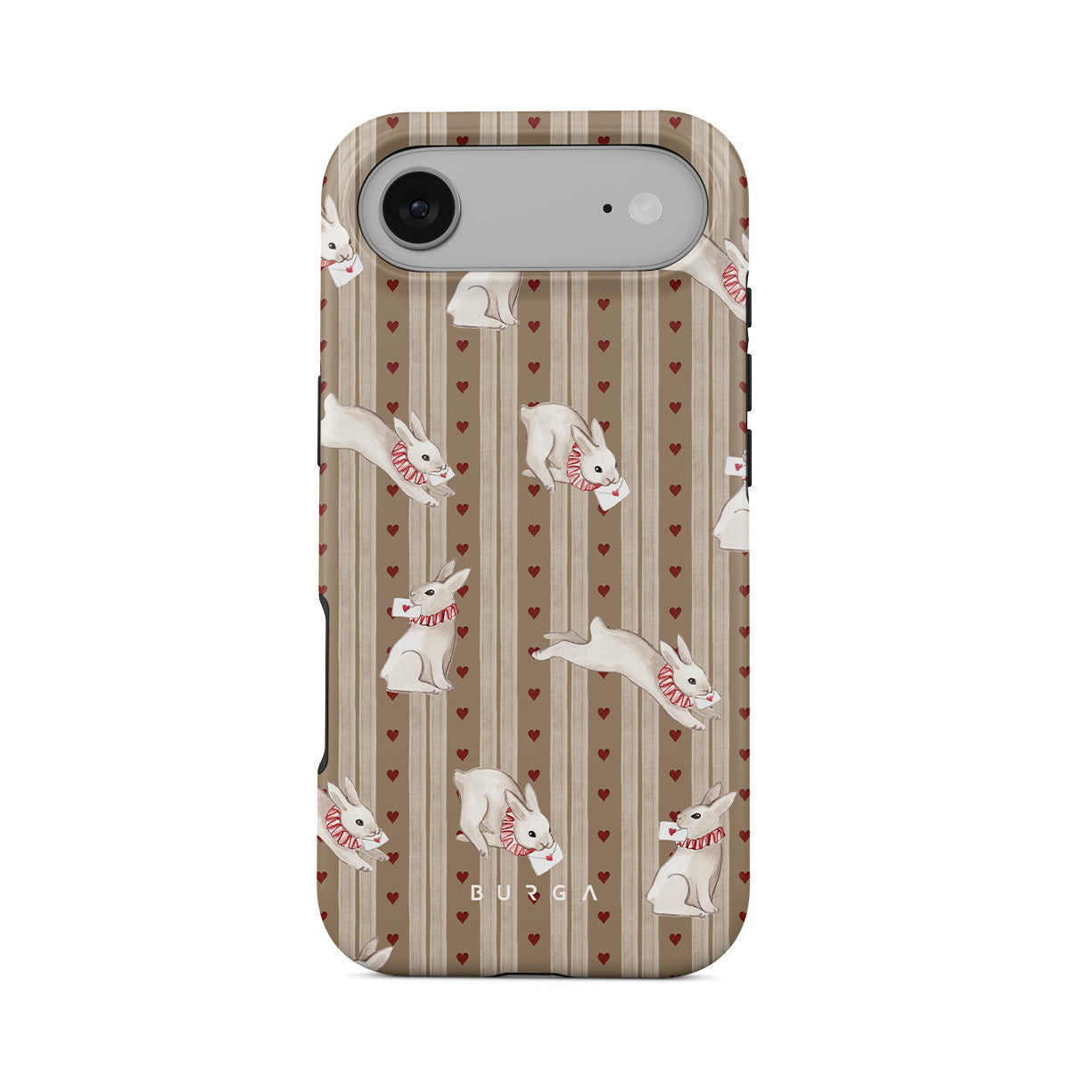 The Late Again iPhone Air phone case design is a love letter lost in time—scattered hearts, hurried notes, and white rabbits racing against a clock that refuses to be tamed. Sent, but never received. Read, but never answered. Always running, always chasing, always just a moment too late.