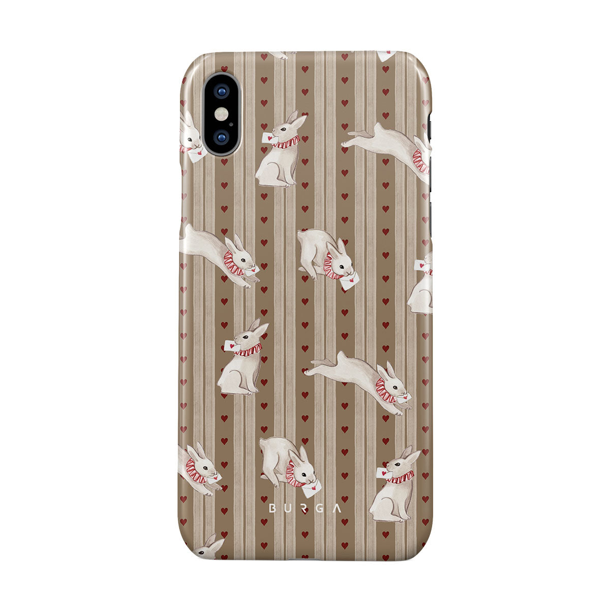 The Late Again iPhone XS Max phone case design is a love letter lost in time—scattered hearts, hurried notes, and white rabbits racing against a clock that refuses to be tamed. Sent, but never received. Read, but never answered. Always running, always chasing, always just a moment too late.