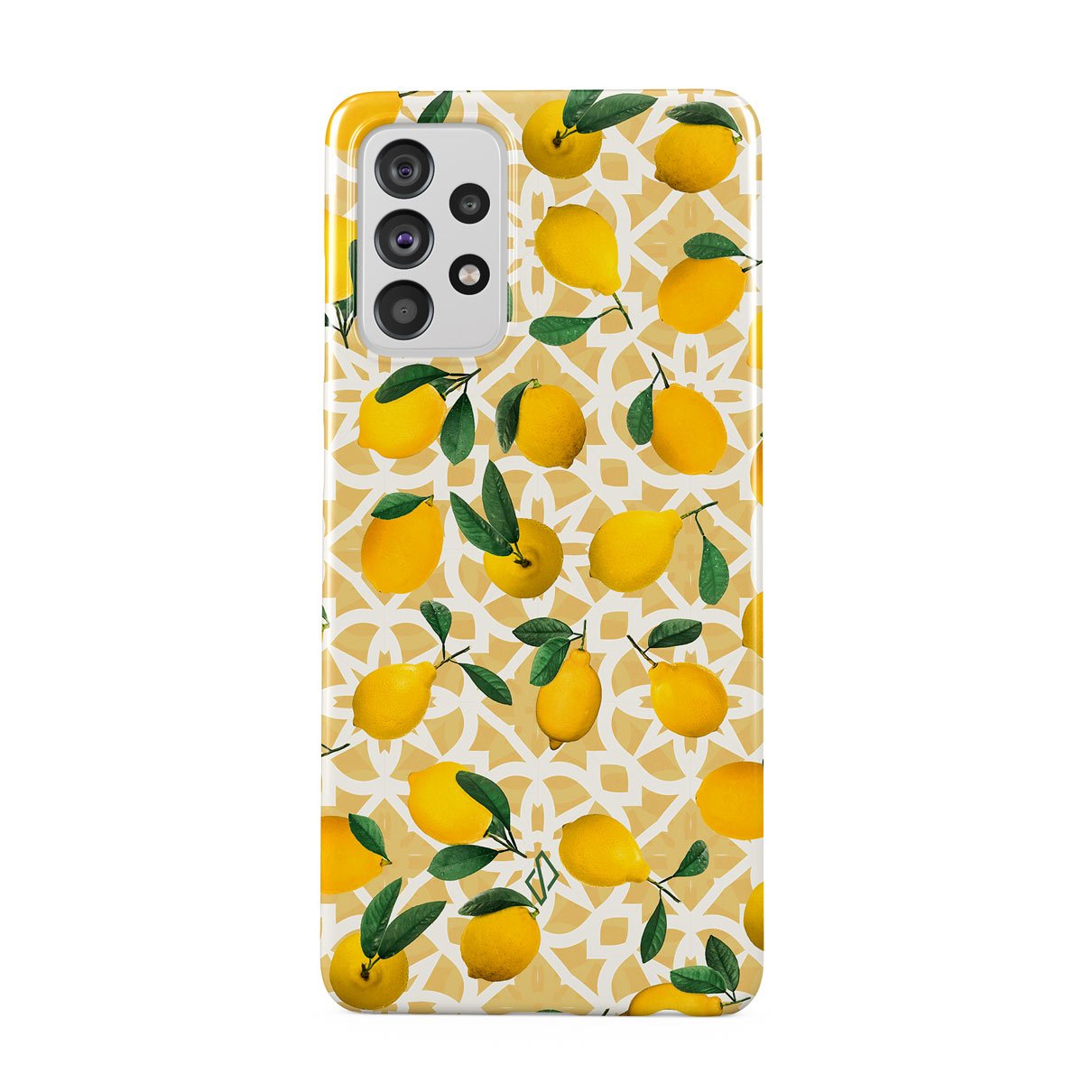 Freshly squeezed, freshly made – drops in water, in your tea, and the scent that gives the energy for the rest of the day. Feel that energy with our Lemon Juice Samsung Galaxy A72 phone case made with a bright yellow lemons pattern that catches the eye. Let your phone become an energy beacon for your day!