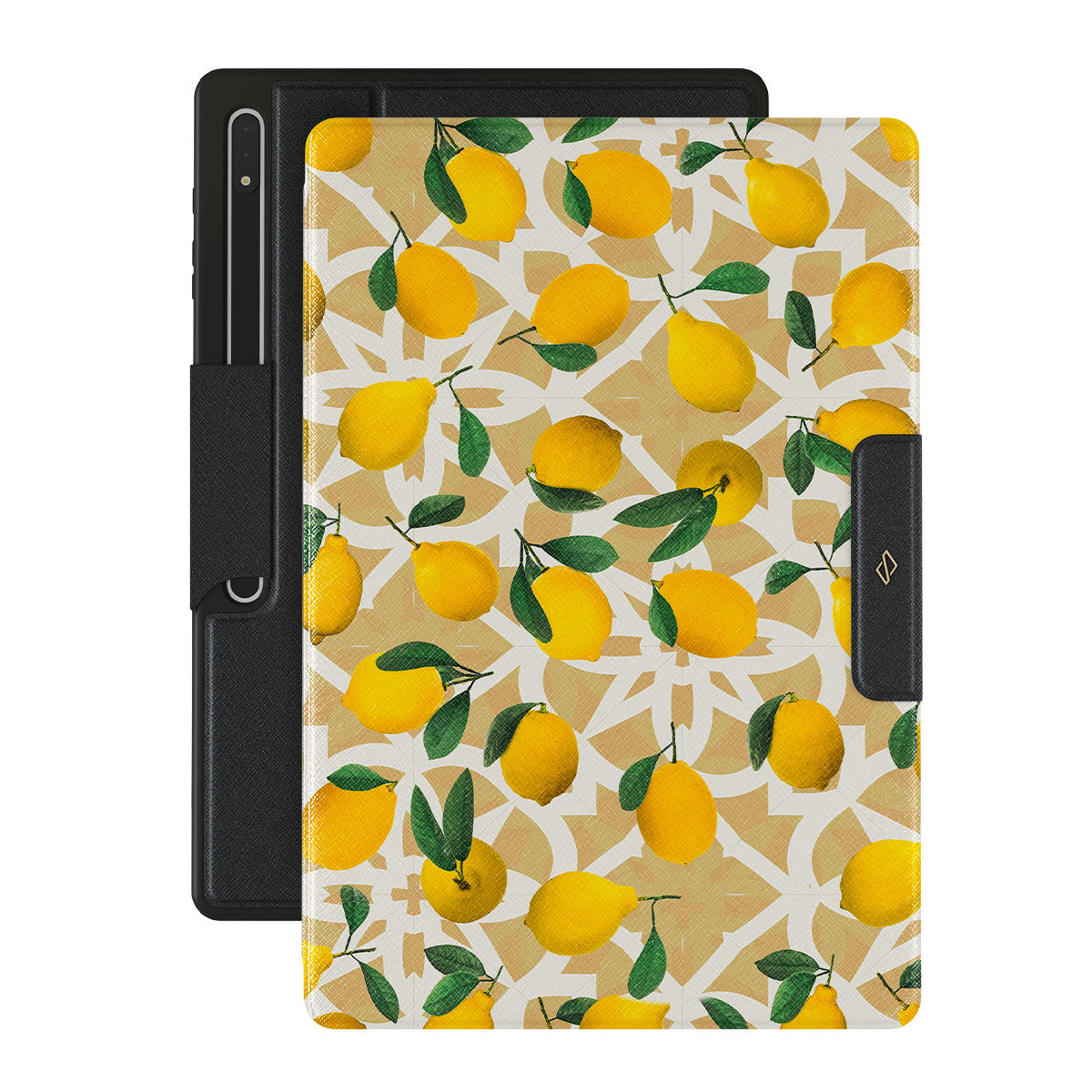 Freshly squeezed, freshly made – drops in water, in your tea, and the scent that gives the energy for the rest of the day. Feel that energy with our Lemon Juice Samsung Galaxy Tab S8 Ultra folio case made with a bright yellow lemons pattern that catches the eye. Let your Galaxy Tab become an energy beacon for your day!