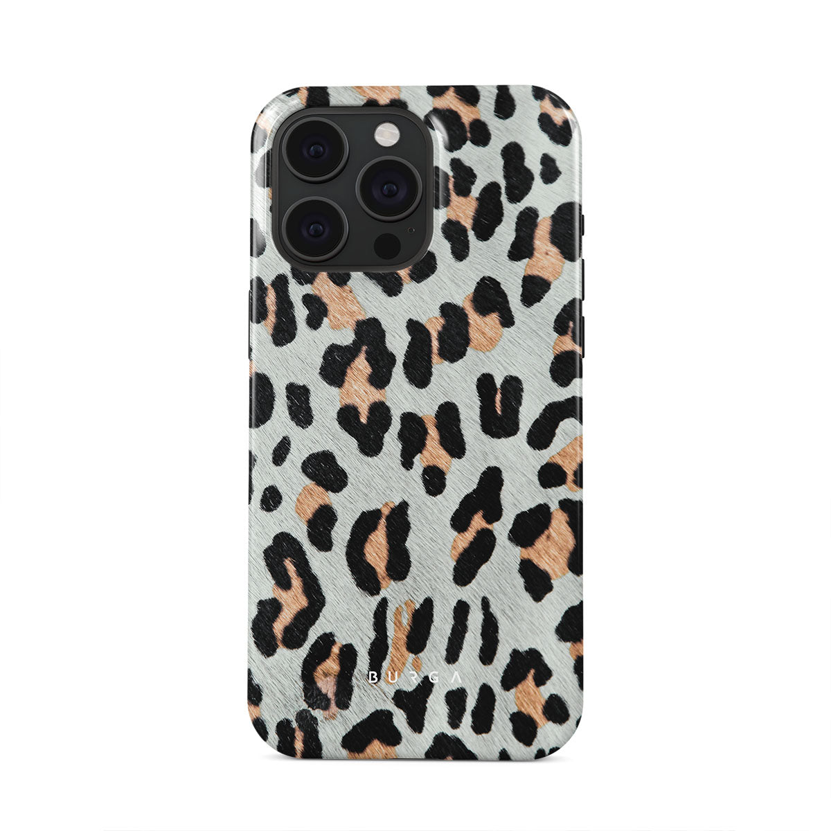 Make your iPhone 15 Pro phone case a statement piece with our Baby Leo design. The timeless leopard print is reimagined on a beautiful pastel blue background. Now you can protect your phone in style.