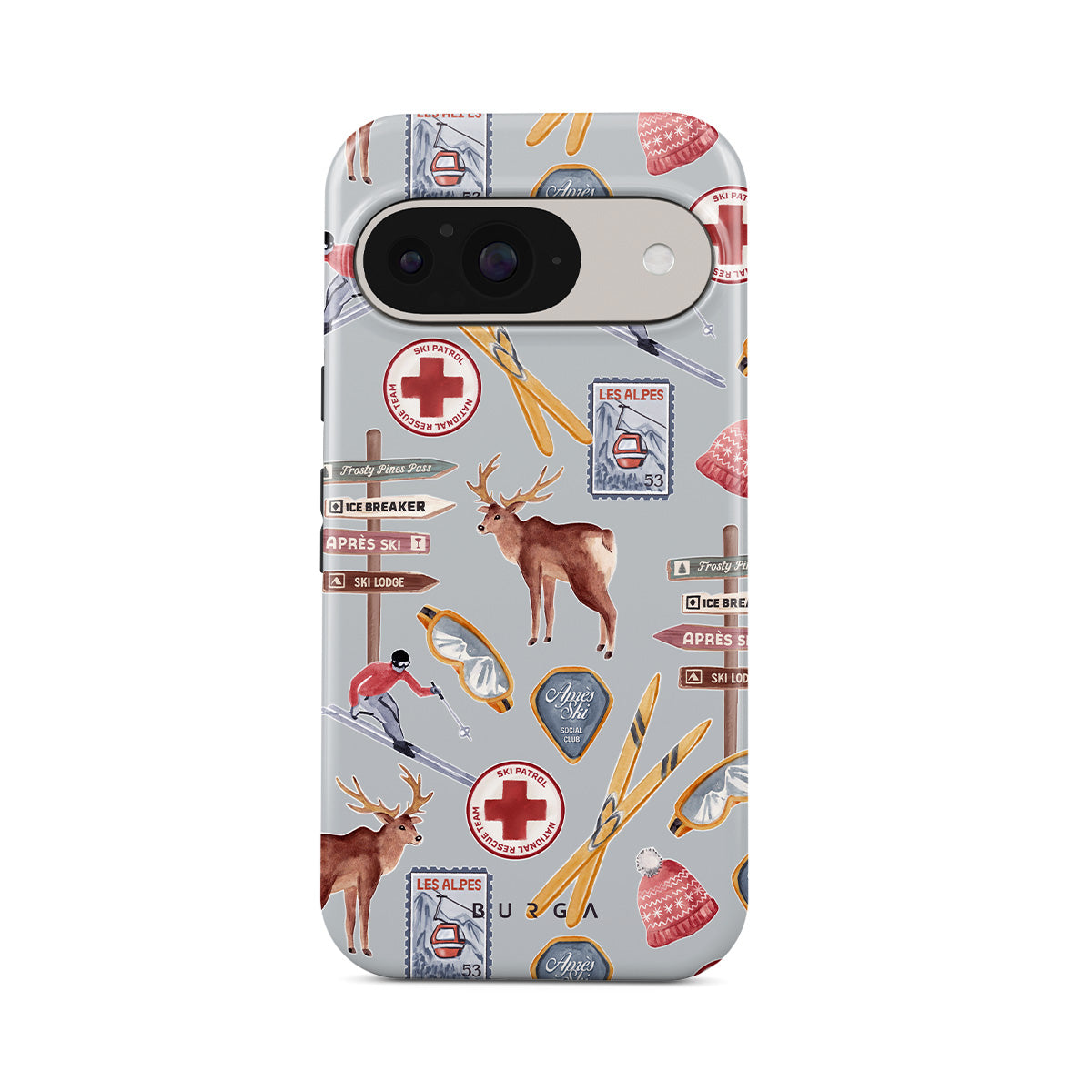 A vintage ski poster straight from your dad's college dorm. A Google Pixel 10 Pro phone case design dripping with nostalgia.