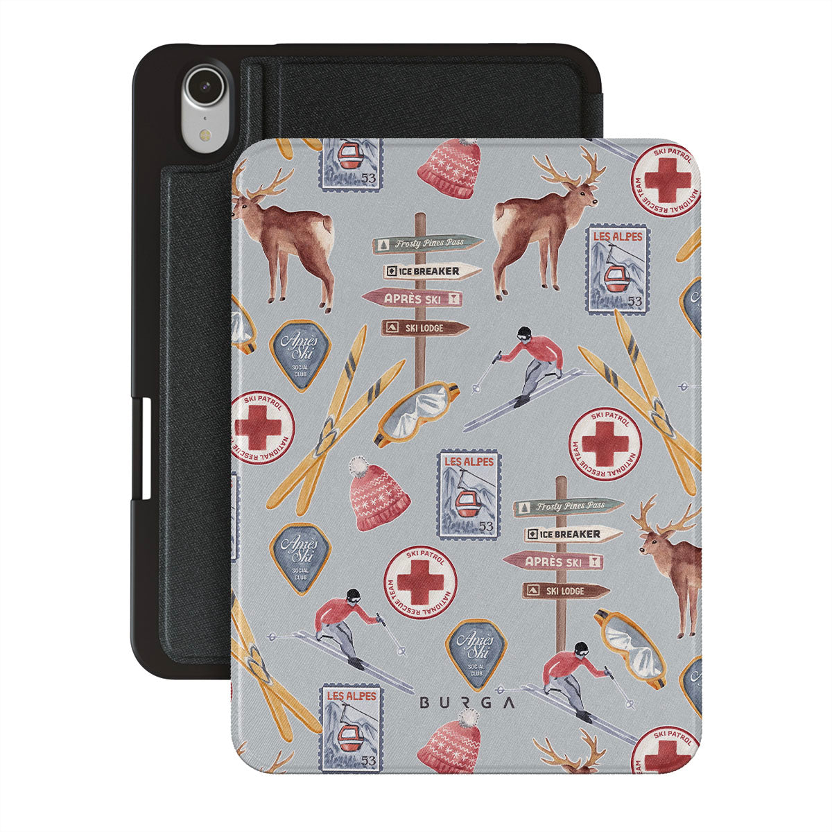A vintage ski poster straight from your dad's college dorm. A iPad Mini 8.3 (A17 Pro/6th Gen) folio case design dripping with nostalgia.