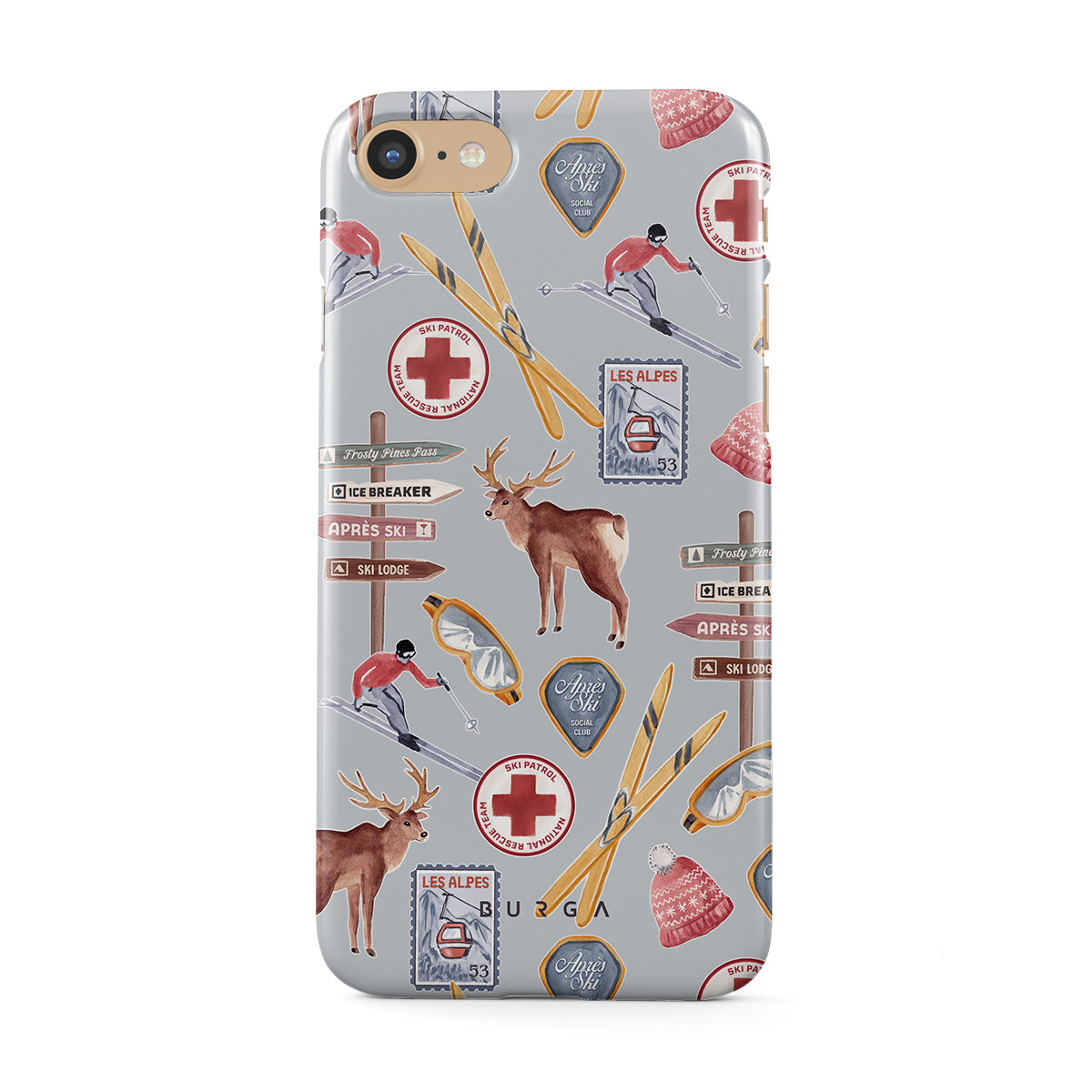 A vintage ski poster straight from your dad's college dorm. A iPhone 7 / iPhone 8 phone case design dripping with nostalgia.