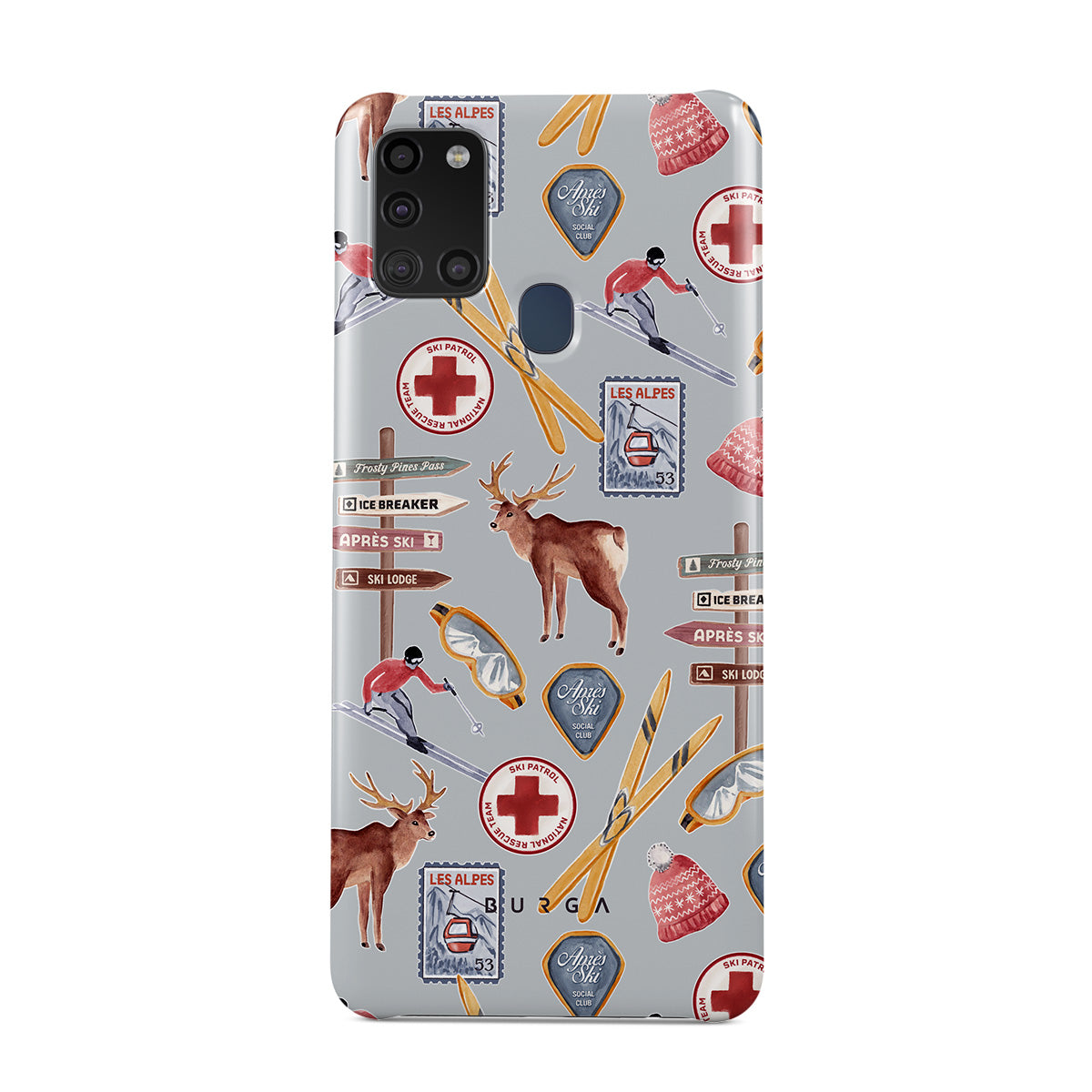 A vintage ski poster straight from your dad's college dorm. A Samsung Galaxy A21s 4G phone case design dripping with nostalgia.