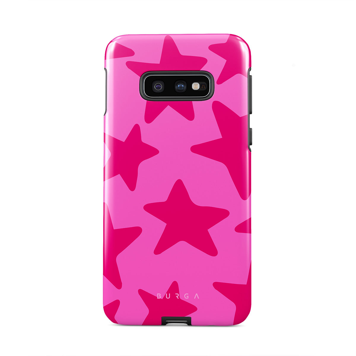 Indulge in a heavenly playground where stars engage in a captivating cosmic game of tag. Enjoy a celestial carnival and fashion fantasy dipped in a sugar-rush of pink. Live the Paradise City dream with our Let's Go Party Samsung Galaxy S10E phone case and flaunt your style.