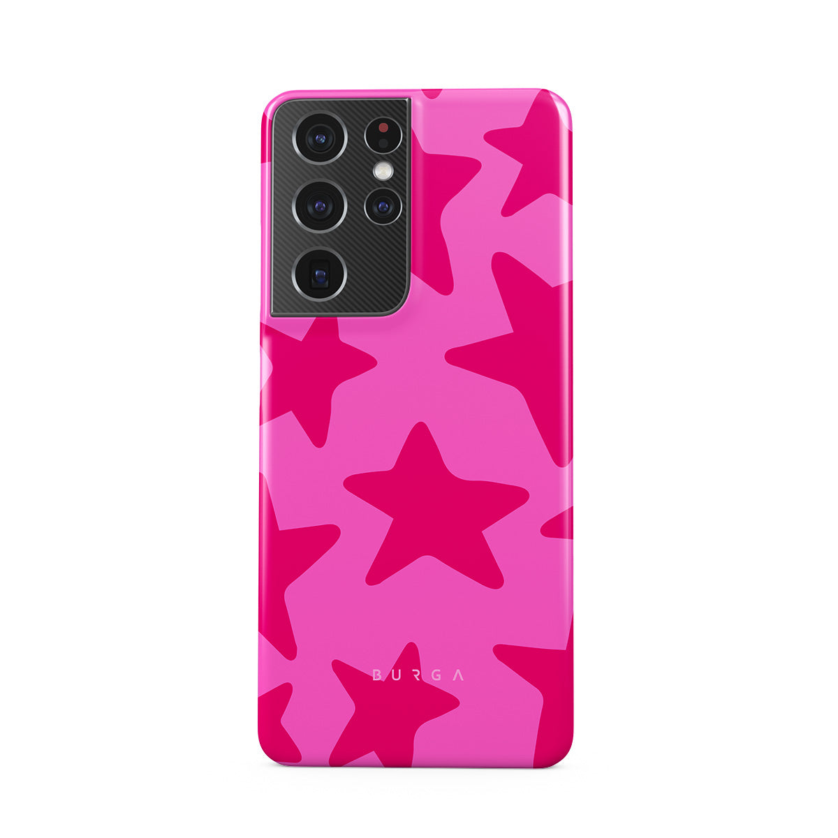 Indulge in a heavenly playground where stars engage in a captivating cosmic game of tag. Enjoy a celestial carnival and fashion fantasy dipped in a sugar-rush of pink. Live the Paradise City dream with our Let's Go Party Samsung Galaxy S21 Ultra phone case and flaunt your style.