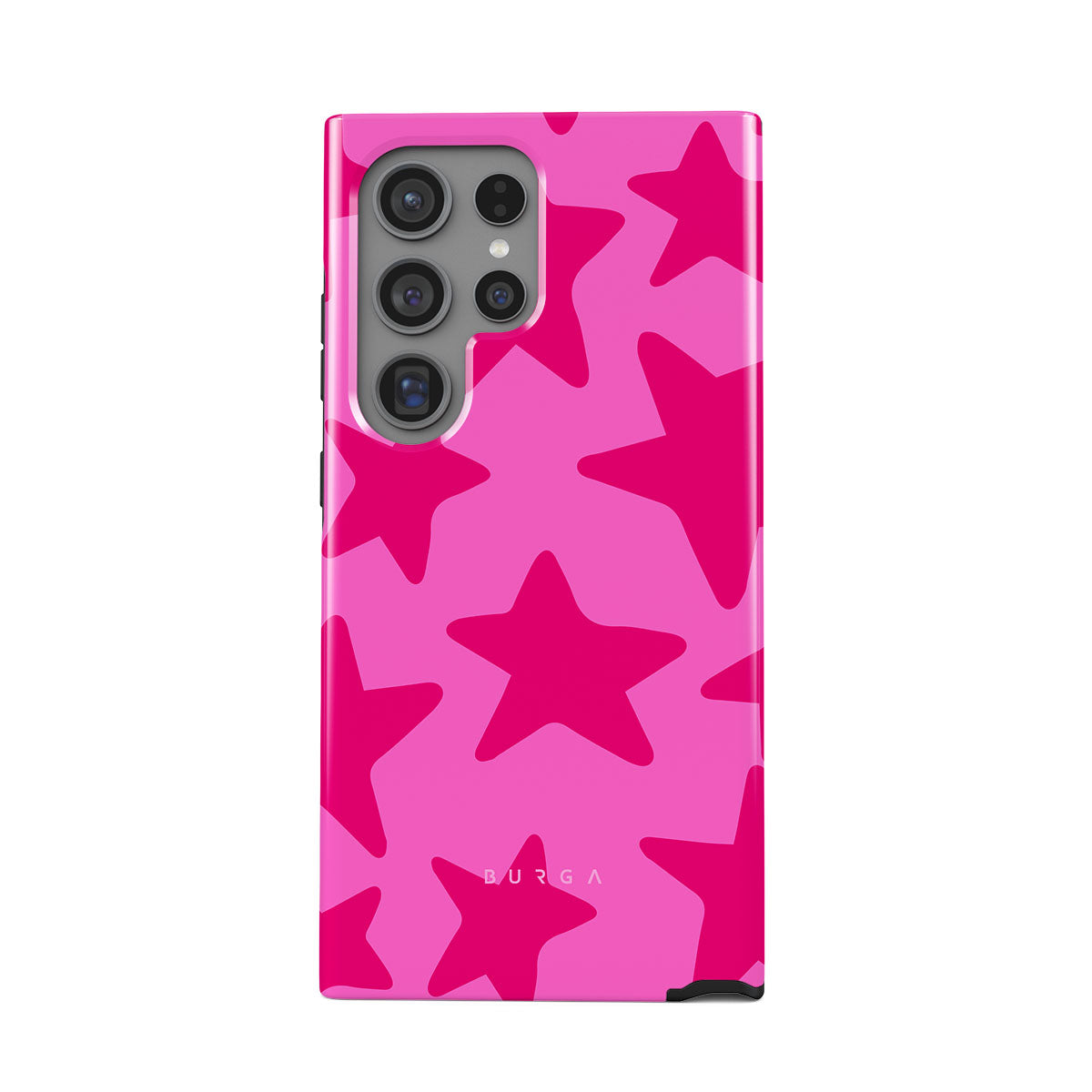 Indulge in a heavenly playground where stars engage in a captivating cosmic game of tag. Enjoy a celestial carnival and fashion fantasy dipped in a sugar-rush of pink. Live the Paradise City dream with our Let's Go Party Samsung Galaxy S24 Ultra phone case and flaunt your style.