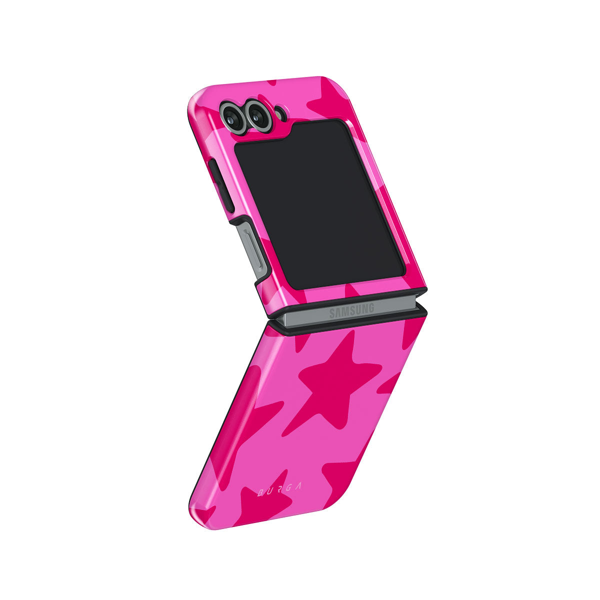 Indulge in a heavenly playground where stars engage in a captivating cosmic game of tag. Enjoy a celestial carnival and fashion fantasy dipped in a sugar-rush of pink. Live the Paradise City dream with our Let's Go Party Samsung Galaxy Z Flip 6 phone case and flaunt your style.