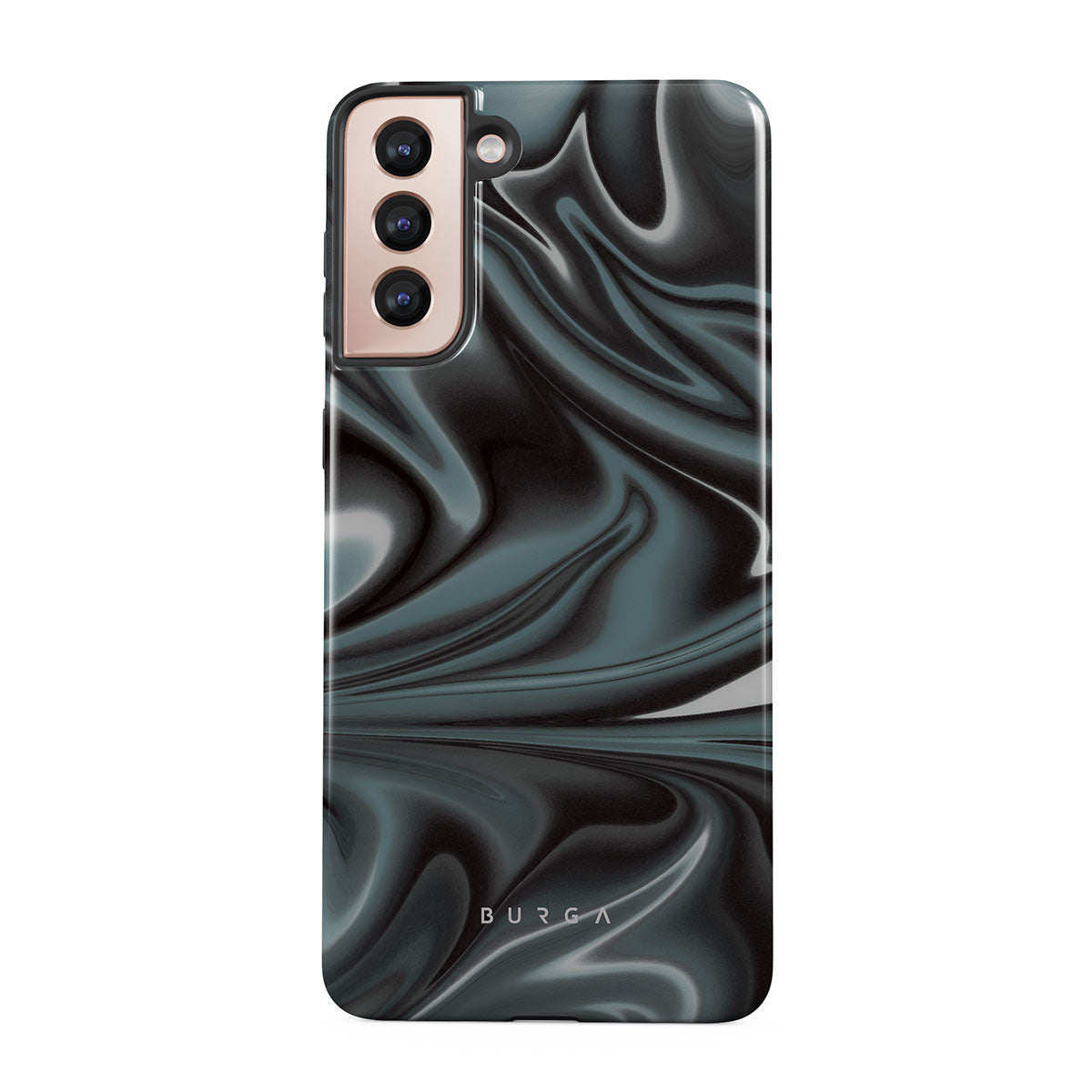 In our Lightning Strike design, black, blue, and white combine to create a daring Samsung Galaxy S21 Plus phone case. The seamless blend of contrasting colors creates a paint-pour-like pattern and a little piece of art that will allow you to transform your phone into one too!