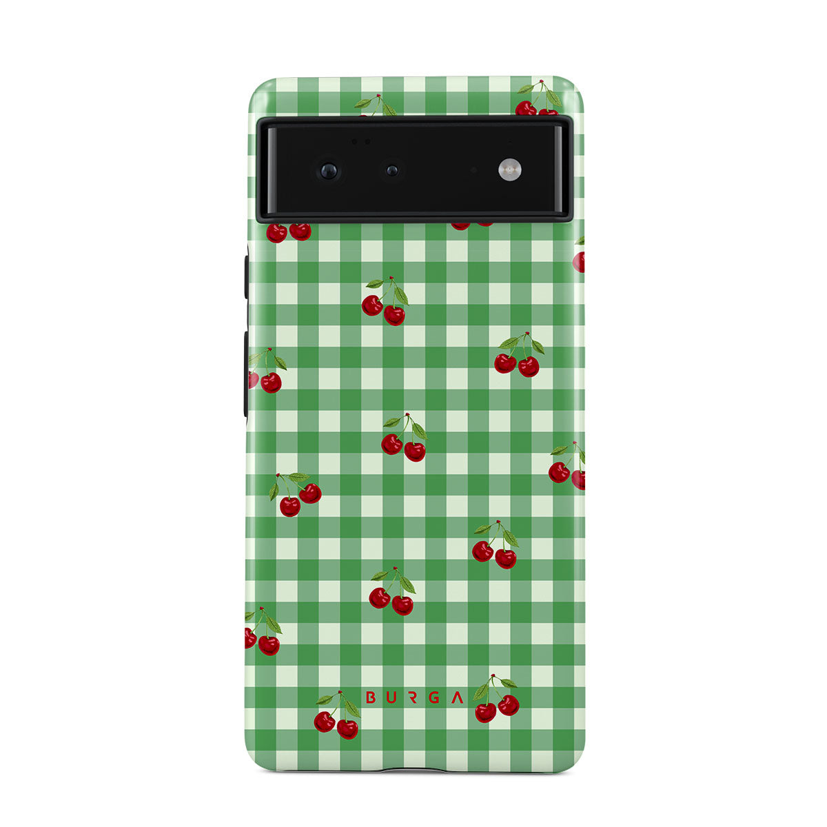 The Little Life Google Pixel 6a phone case design: green checks, simple and true, like a patch of grass under a tree, where you can sit and watch the small world go by, every leaf a chapter in nature’s story.