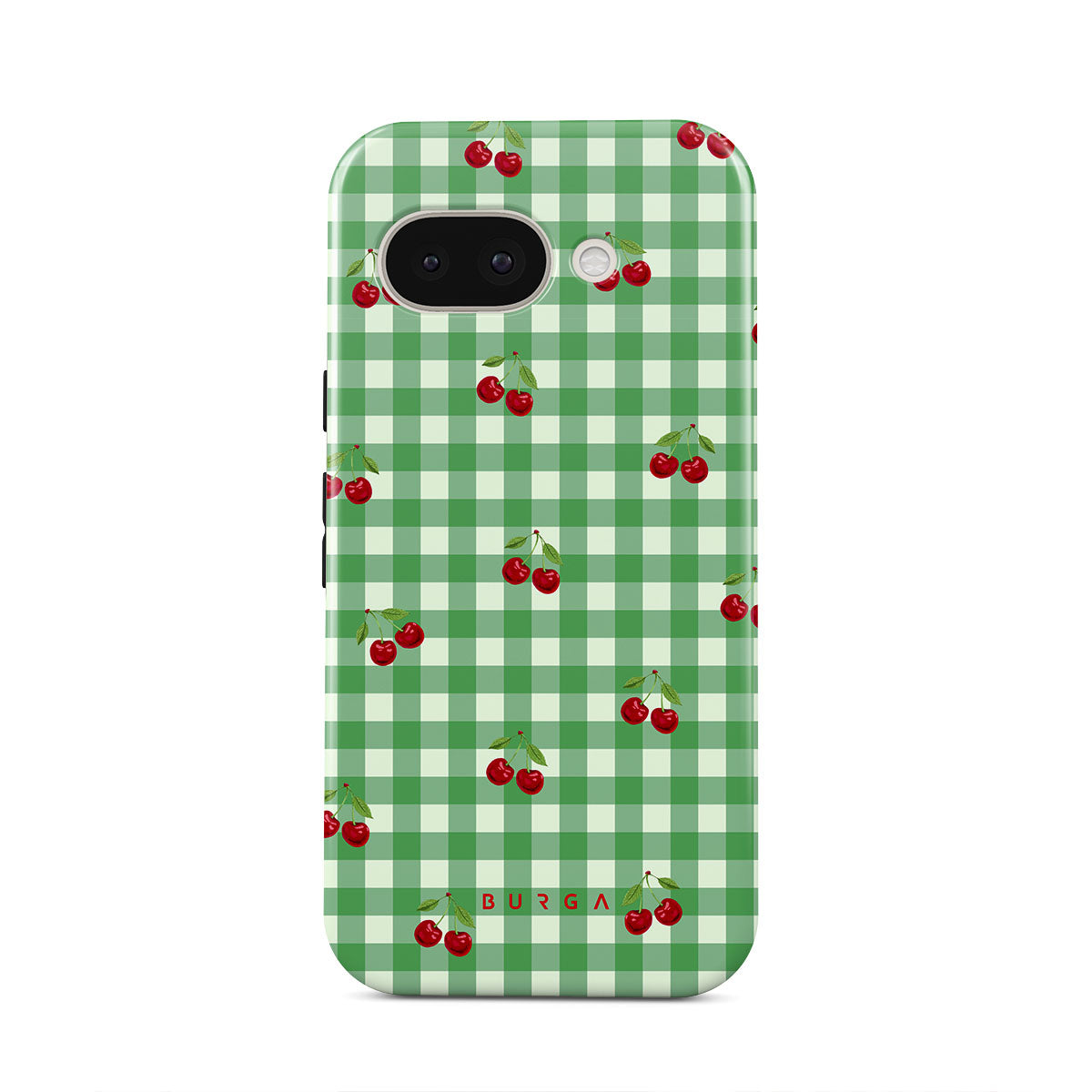 The Little Life Google Pixel 9a phone case design: green checks, simple and true, like a patch of grass under a tree, where you can sit and watch the small world go by, every leaf a chapter in nature’s story.