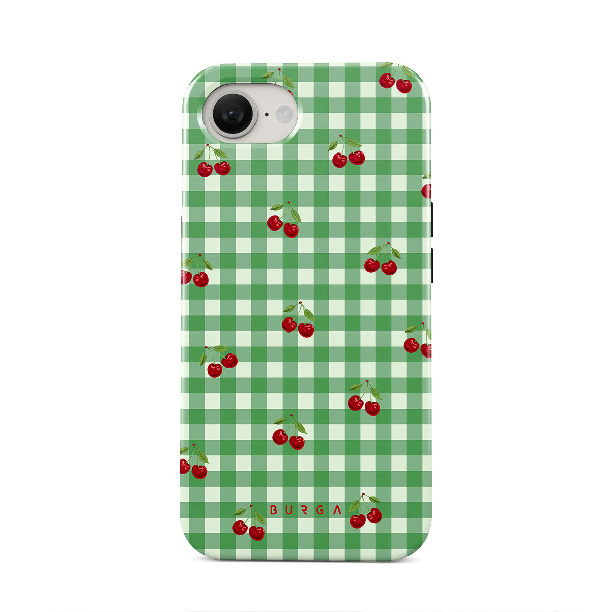The Little Life iPhone 16e phone case design: green checks, simple and true, like a patch of grass under a tree, where you can sit and watch the small world go by, every leaf a chapter in nature’s story.
