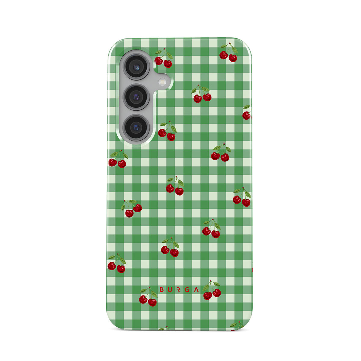The Little Life Samsung Galaxy S24 FE phone case design: green checks, simple and true, like a patch of grass under a tree, where you can sit and watch the small world go by, every leaf a chapter in nature’s story.