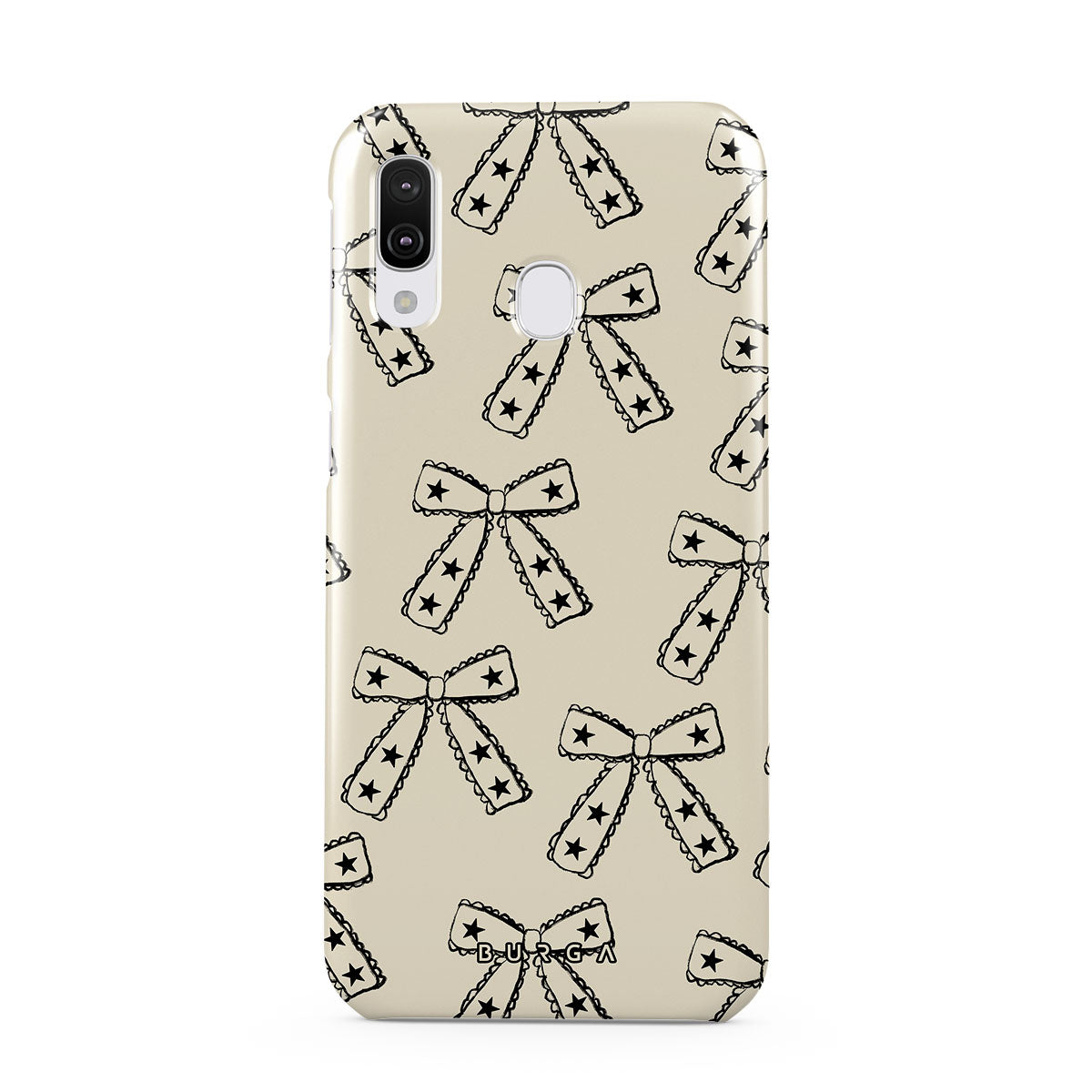 Shine on, Lone Star. Starry bows on a beige background bring a fun twist to your look. This Samsung Galaxy A40 phone case design is ideal for those who march to the beat of their own drum and make their own fashion rules.