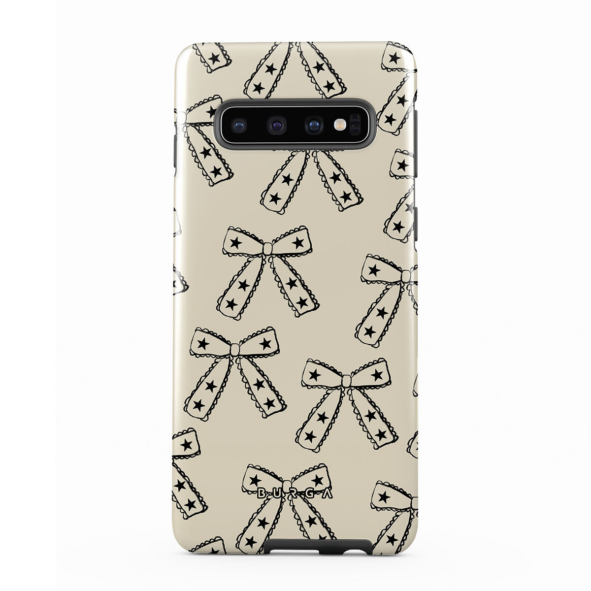 Shine on, Lone Star. Starry bows on a beige background bring a fun twist to your look. This Samsung Galaxy S10 4G phone case design is ideal for those who march to the beat of their own drum and make their own fashion rules.