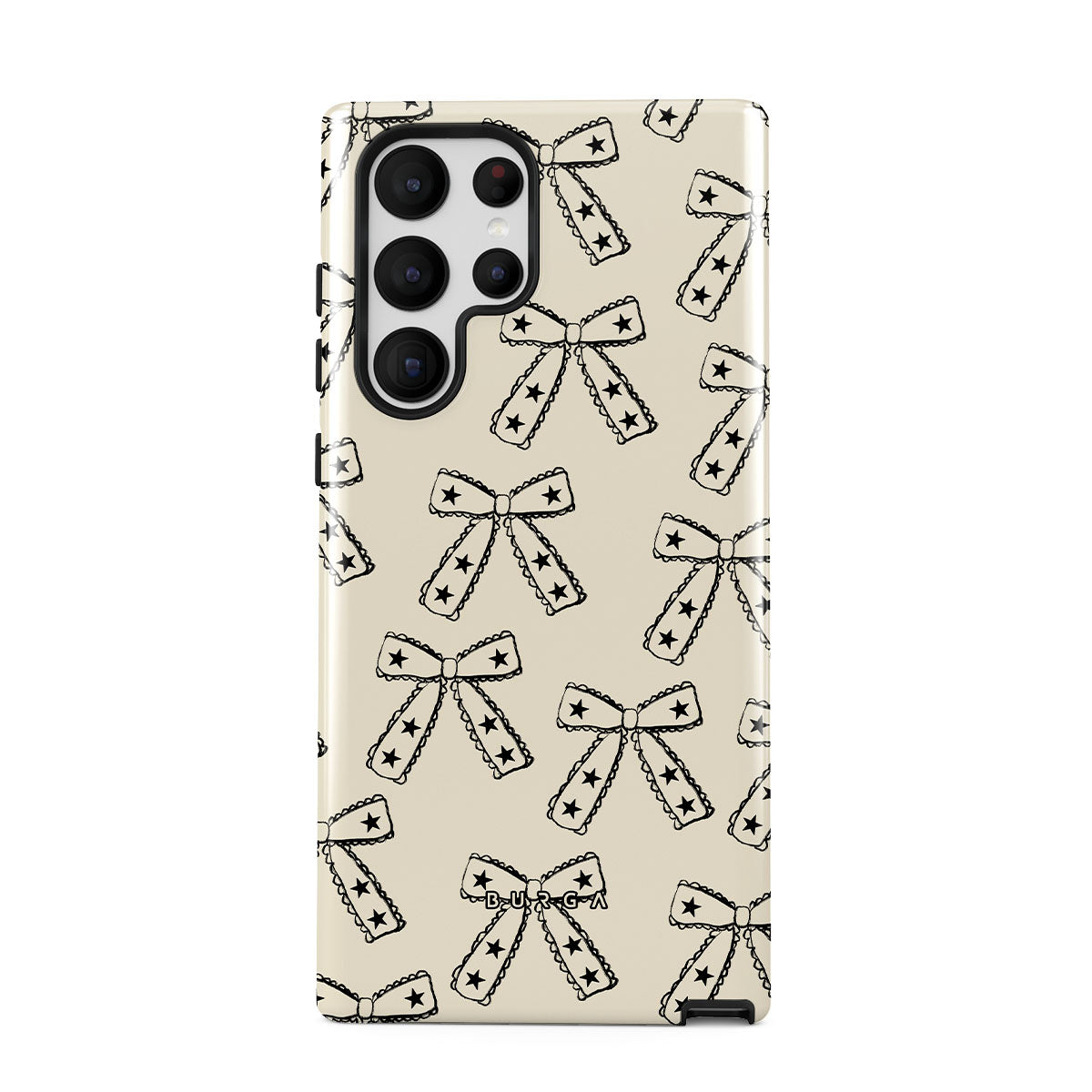 Shine on, Lone Star. Starry bows on a beige background bring a fun twist to your look. This Samsung Galaxy S22 Ultra phone case design is ideal for those who march to the beat of their own drum and make their own fashion rules.