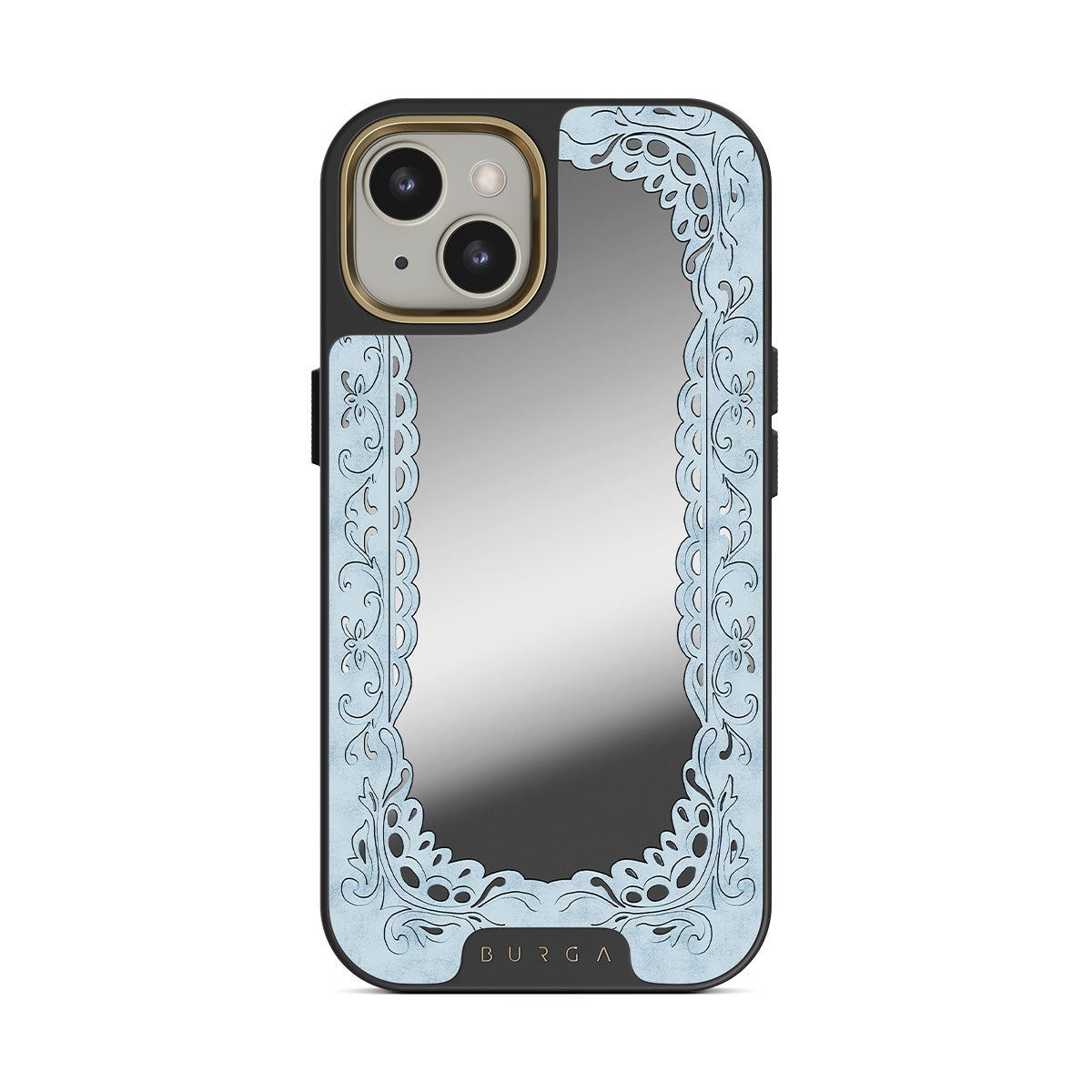 Peer into the Looking Glass iPhone 13 phone case design, and something peers back. A delicate blue frame, a mirror surface, and the quiet unease that maybe, just maybe, you're not the only one looking.