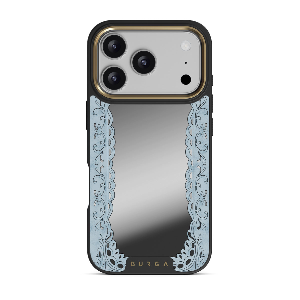 Peer into the Looking Glass iPhone 17 Pro phone case design, and something peers back. A delicate blue frame, a mirror surface, and the quiet unease that maybe, just maybe, you're not the only one looking.