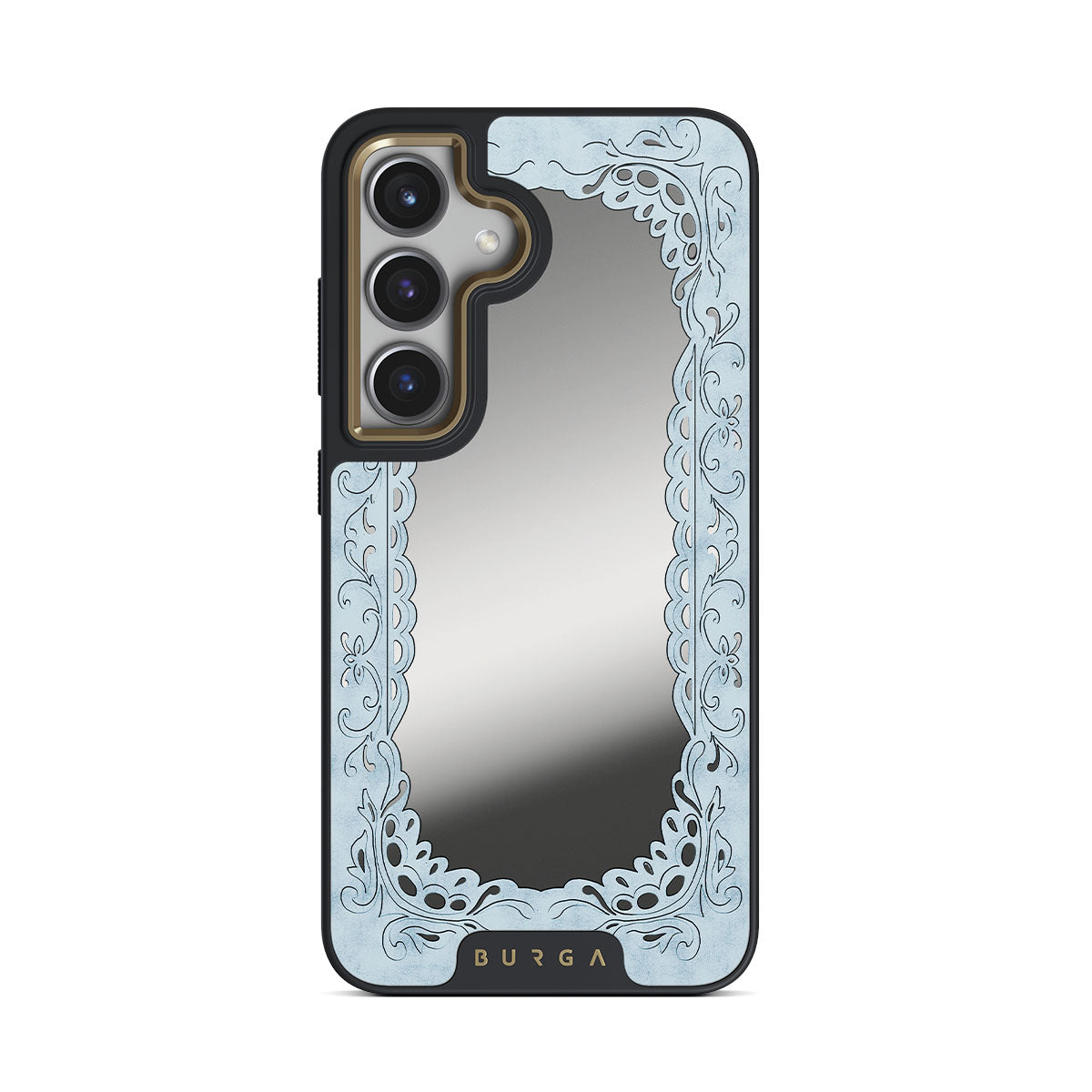 Peer into the Looking Glass Samsung Galaxy S24 phone case design, and something peers back. A delicate blue frame, a mirror surface, and the quiet unease that maybe, just maybe, you're not the only one looking.
