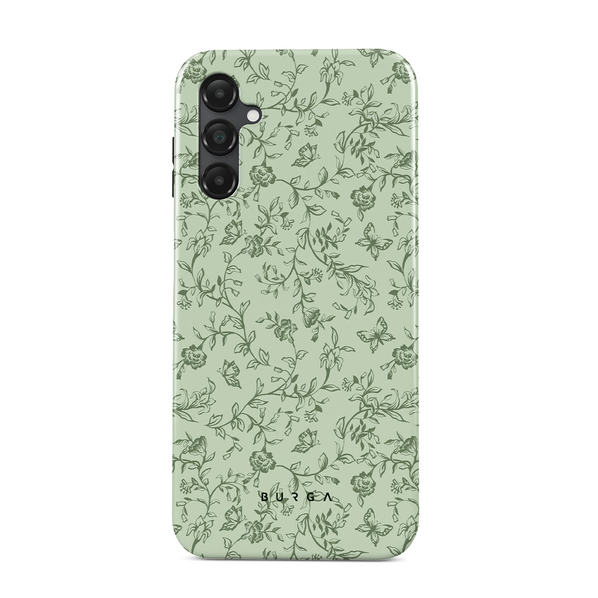 Soft green butterflies, delicate flowers, the kind of dream you wake up from but can’t quite shake. The Lost in Thought Samsung Galaxy A25 phone case design lingers like a half-remembered story, floating just out of reach. Was it real? Or just another trick of Wonderland?