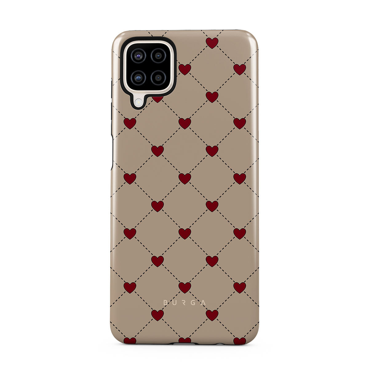 Secrets of the heart whispered between elegant beige diamonds. Every moment, a red heart shimmers—a hidden message, a silent wish, a love letter to the beholder. Discover our Love Letter Samsung Galaxy A12 4G Case phone case design.